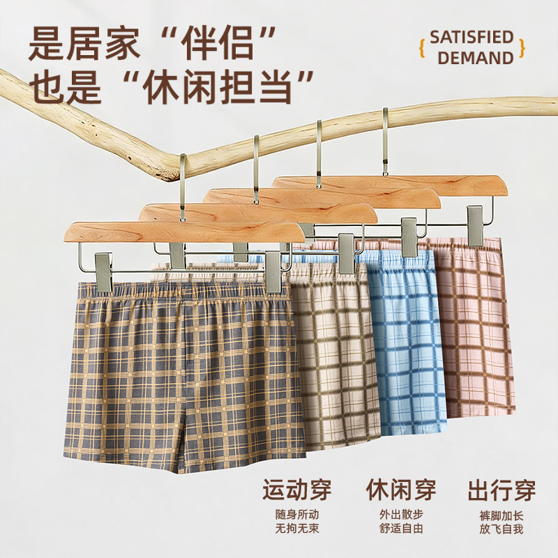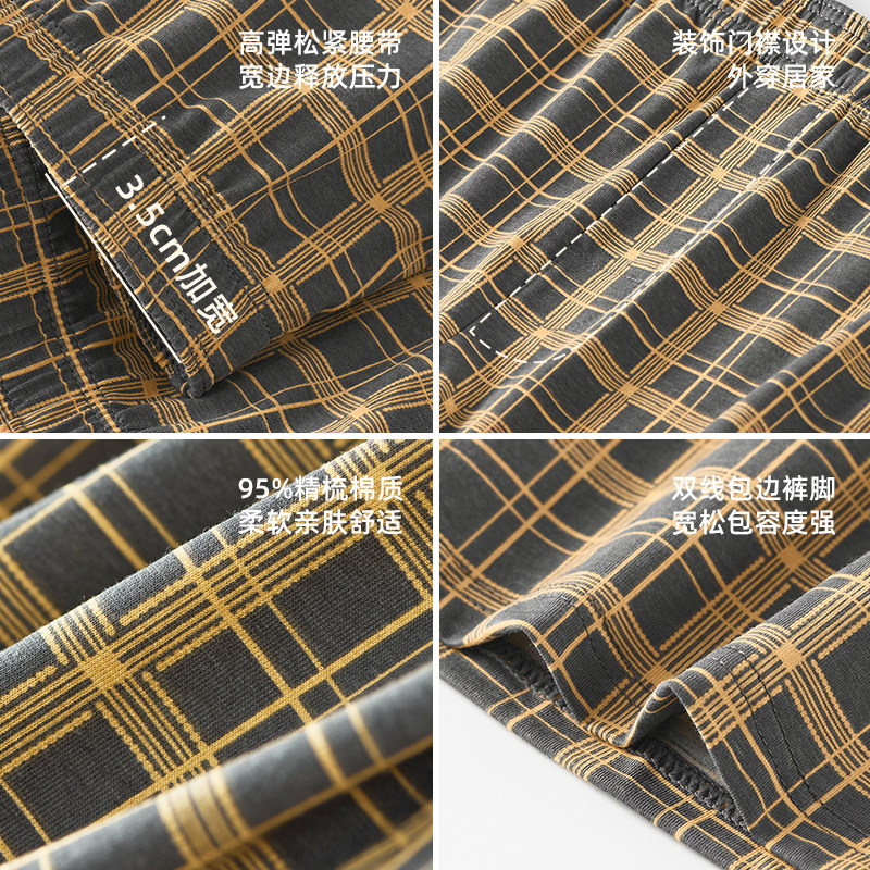 男士内裤阿罗裤纯棉舒适透气格子简约家居裤可外穿居家四角大裤衩