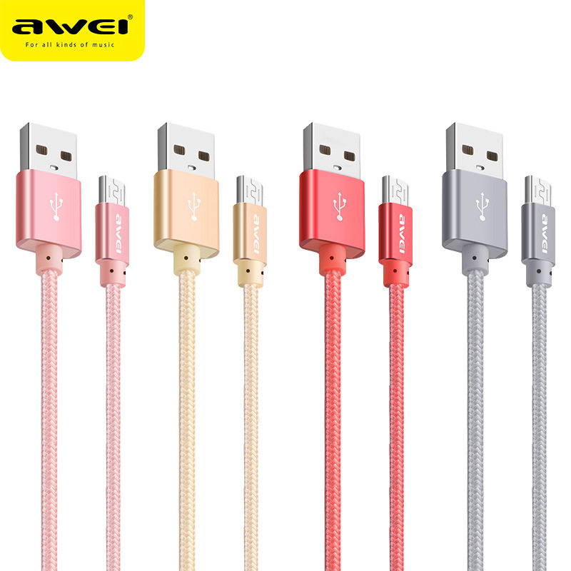 Awei安卓micro USB数据线合金编织线智能手机快速充电行车记录仪