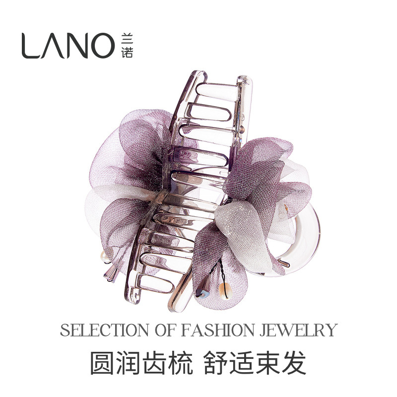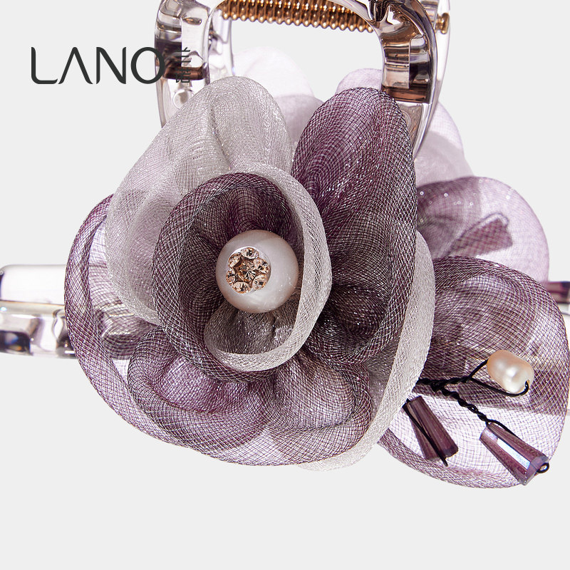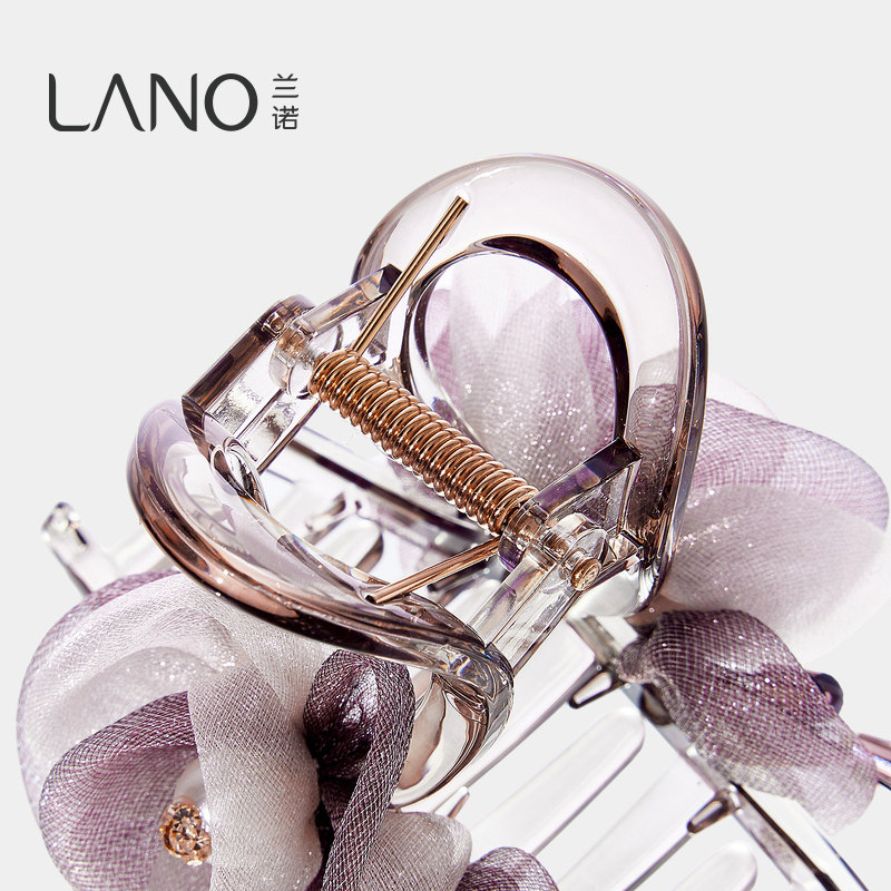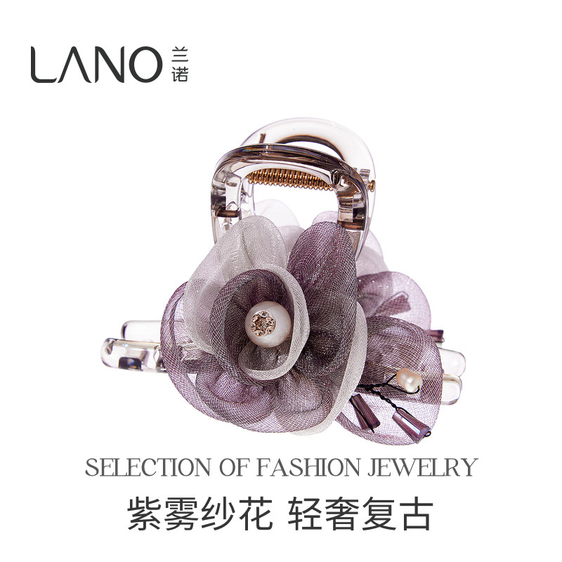 兰诺紫色网纱花朵抓夹女高级感2026新款大号发量大半扎发鲨鱼发夹