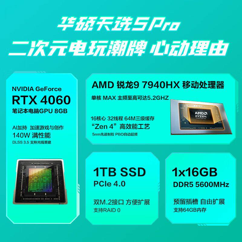 华硕 天选5Pro 天选6ProRTX4060/5060学生电竞游戏满血笔记本电脑