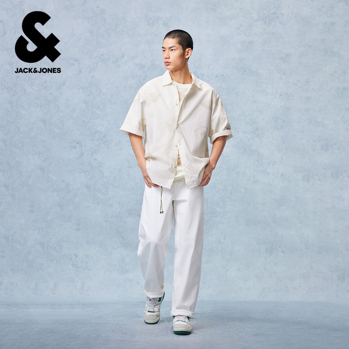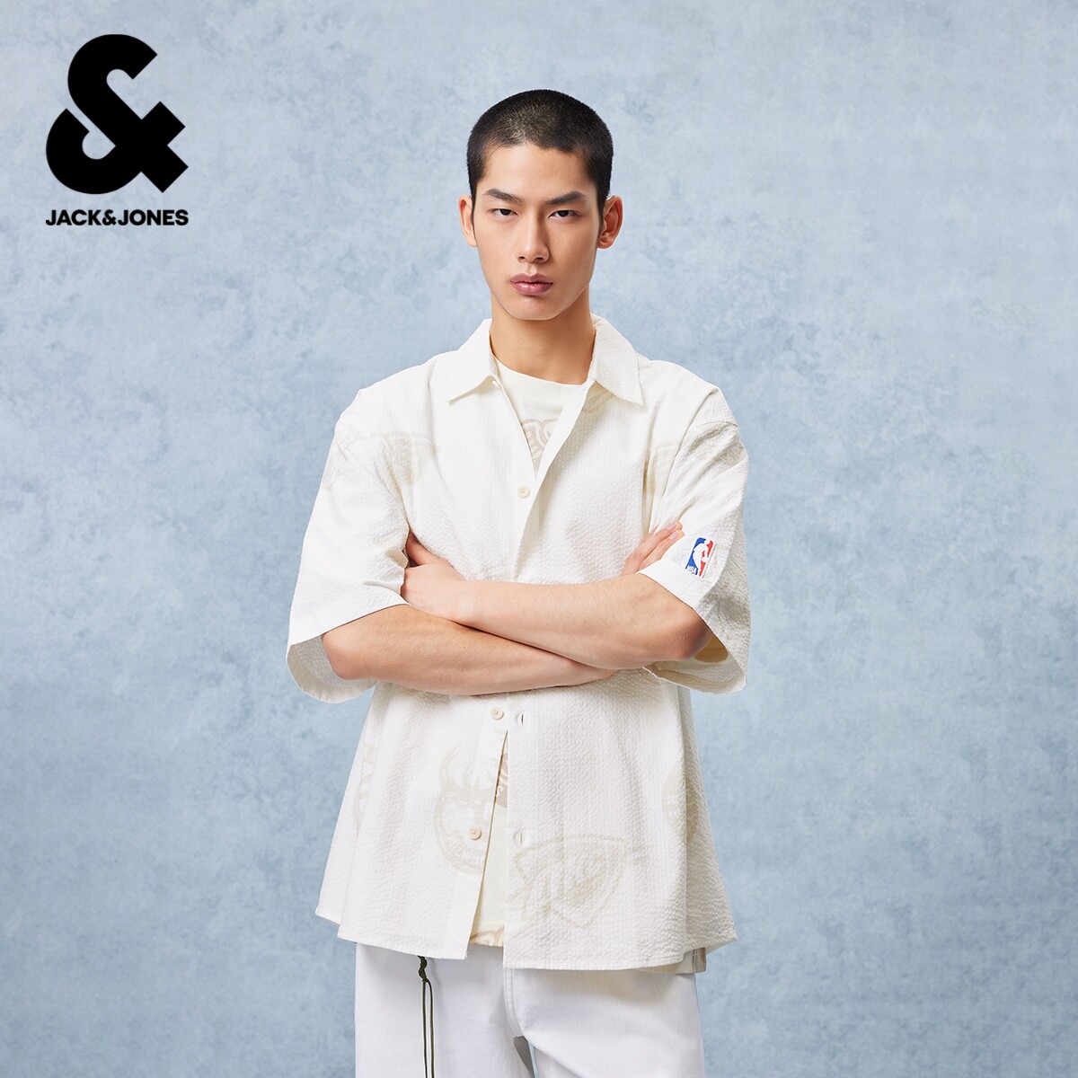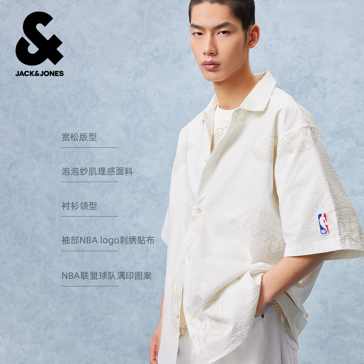 【NBA联名联盟球队】杰克琼斯春夏季新款棉泡泡纱宽松短袖衬衫T恤
