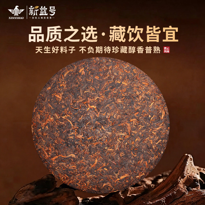 金印老曼峨普洱茶熟茶新益号云南七子饼布朗山古树茶叶口粮自己喝
