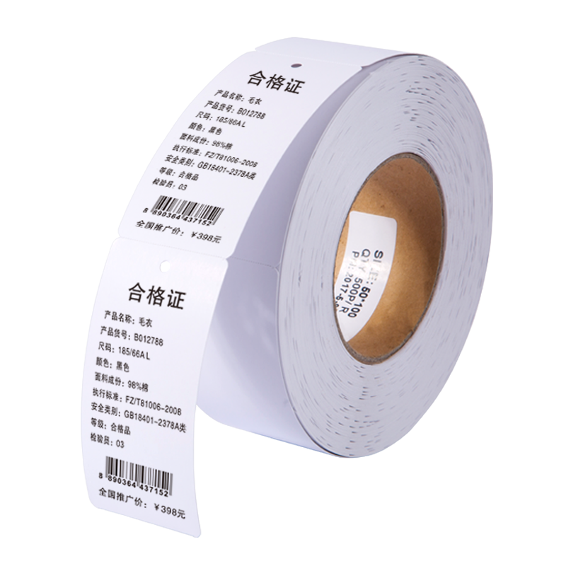 空白吊牌铜版纸合格证价格服装店标签标价卷筒打印卡片纸衣服商标logo内衣卷装铜板吊牌标签热转印混合基碳带