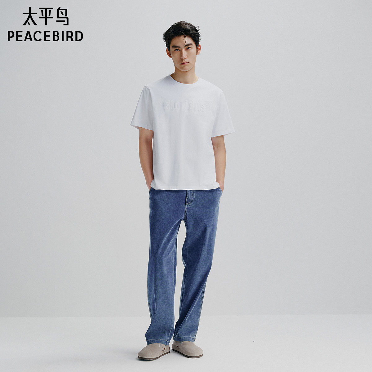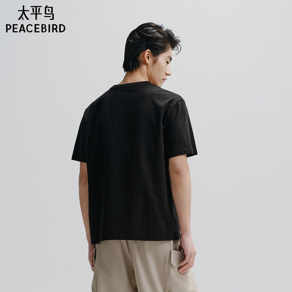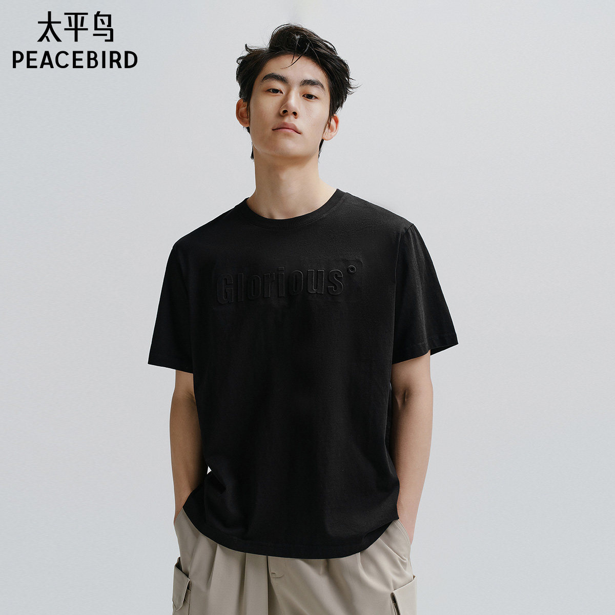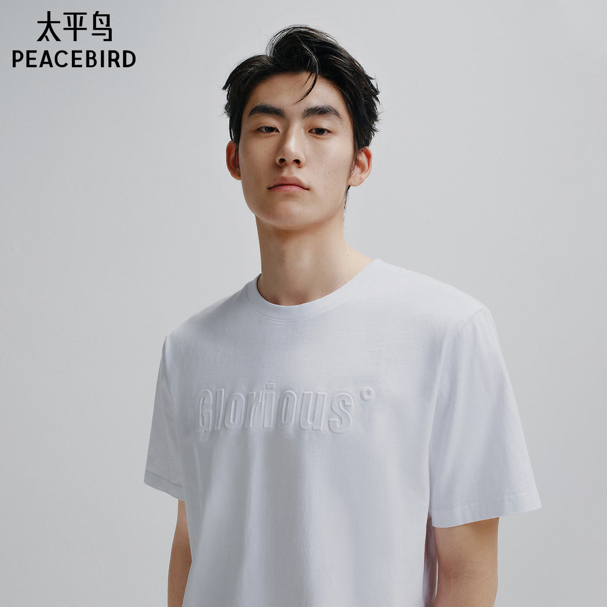 【重磅】太平鸟男装立体印花T恤夏宽松纯白t圆领情侣短袖体恤