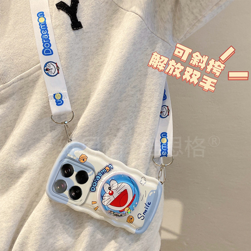 适用小米15手机壳14pro可斜挎13ultra哆啦A梦12x带挂绳11挂链10s镜面9可爱civi2叮当猫civi3化妆镜4硅胶mi女p