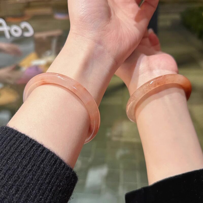 纯天然桃花酿玉镯金丝玉高冰透女款圆条手镯粉色少女送女友石英岩