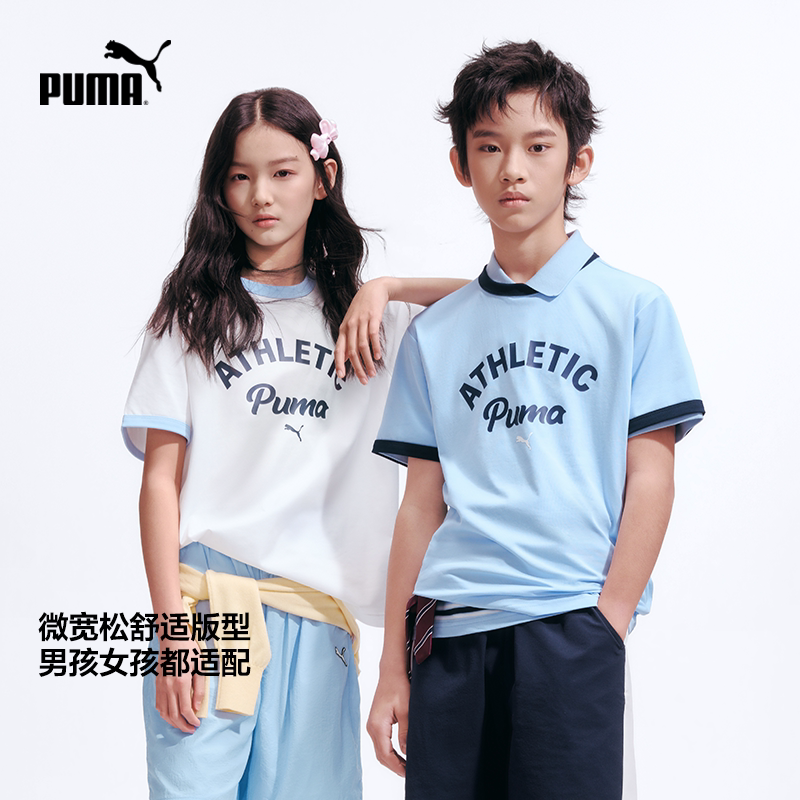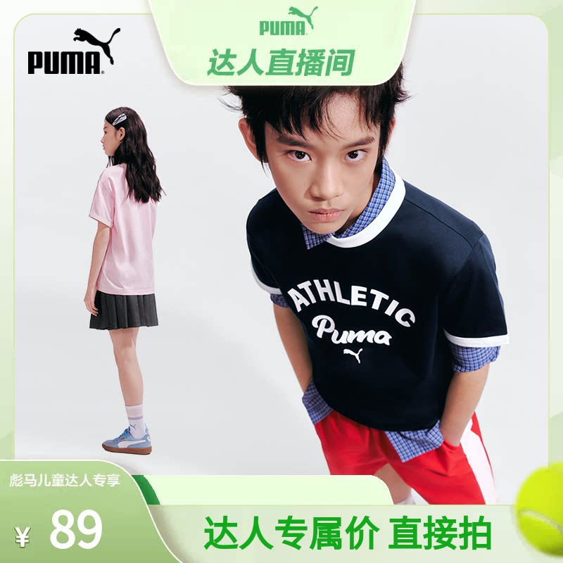 PUMA彪马童装儿童男童吸湿T恤大童衣服速干短袖运动宽松圆领百补