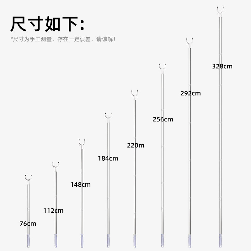 不锈钢晾衣杆叉加长晾晒衣服衣叉固定挑挂超长撑衣杆家用店用单杆