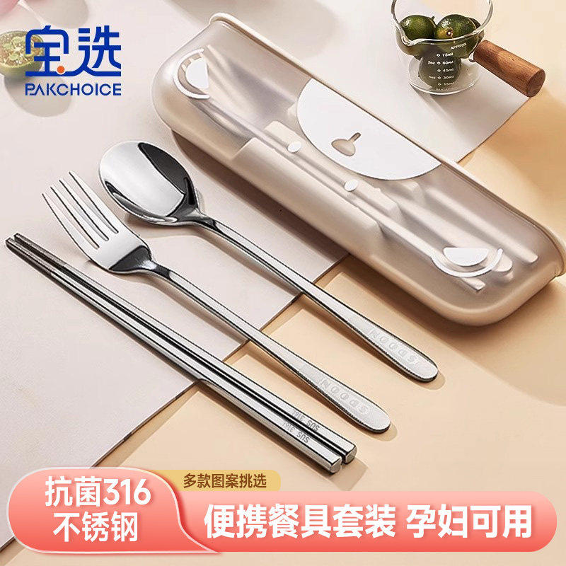 316不锈钢筷子勺子套装一人用便携盒三件套收纳盒304餐具学生套装