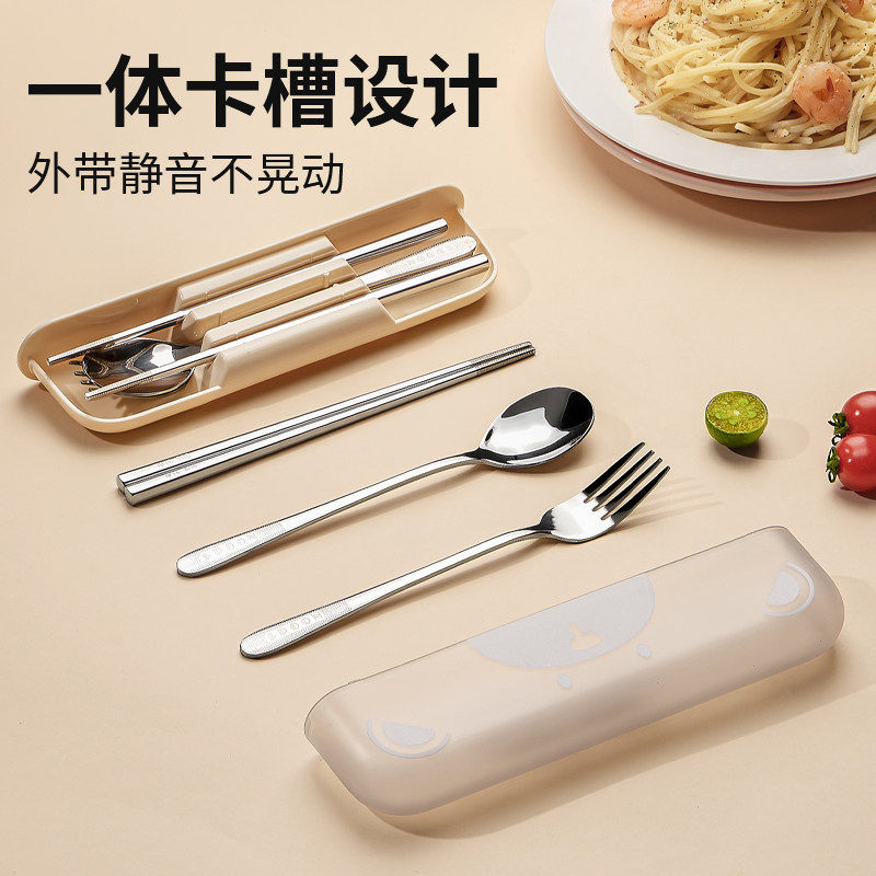 筷子勺子叉子套装一人用便携餐具收纳盒学生不锈钢三件套单人装