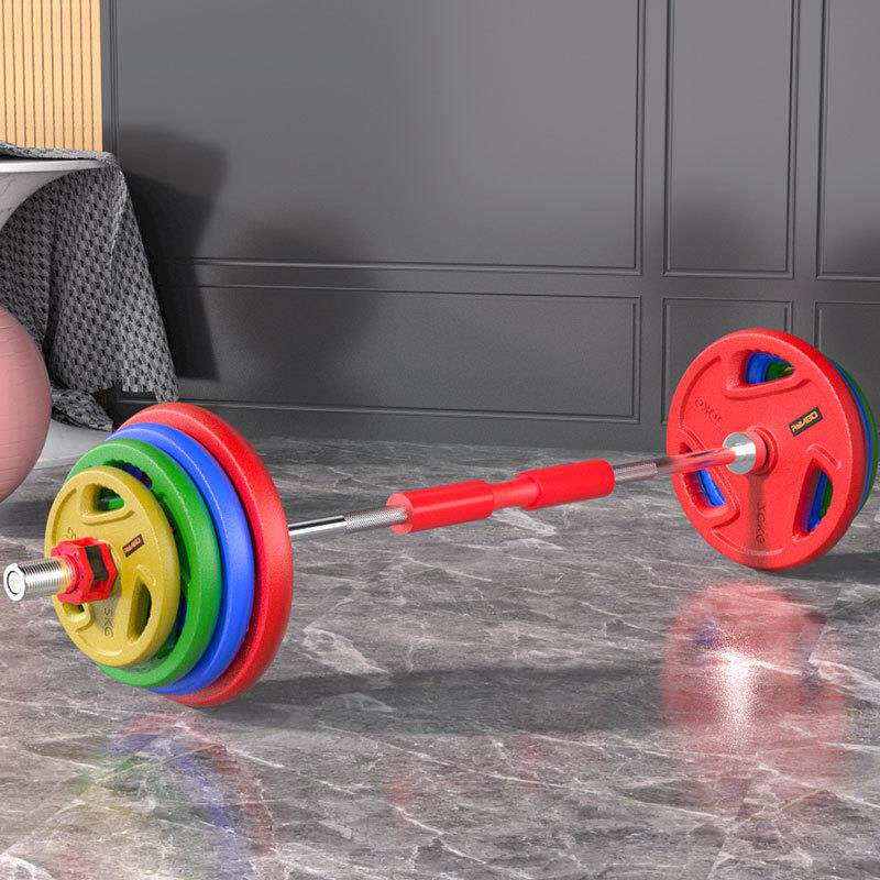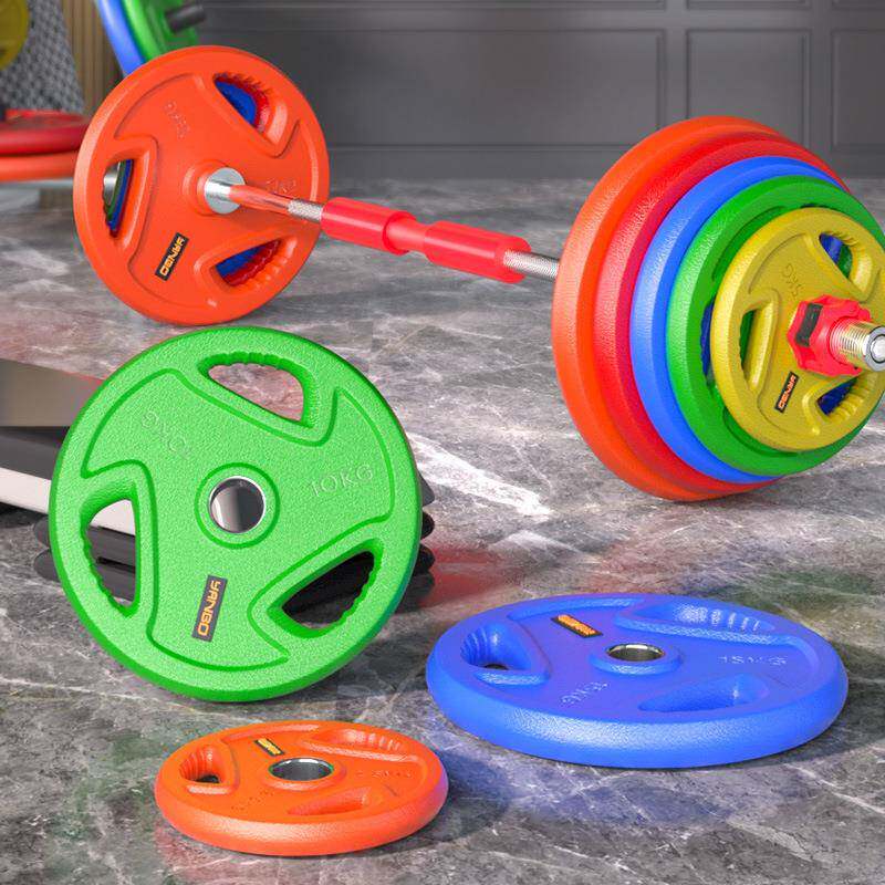 彩色杠铃片套装大孔女士深蹲举重卧推曲奥杆家用健身器材练臀推桥