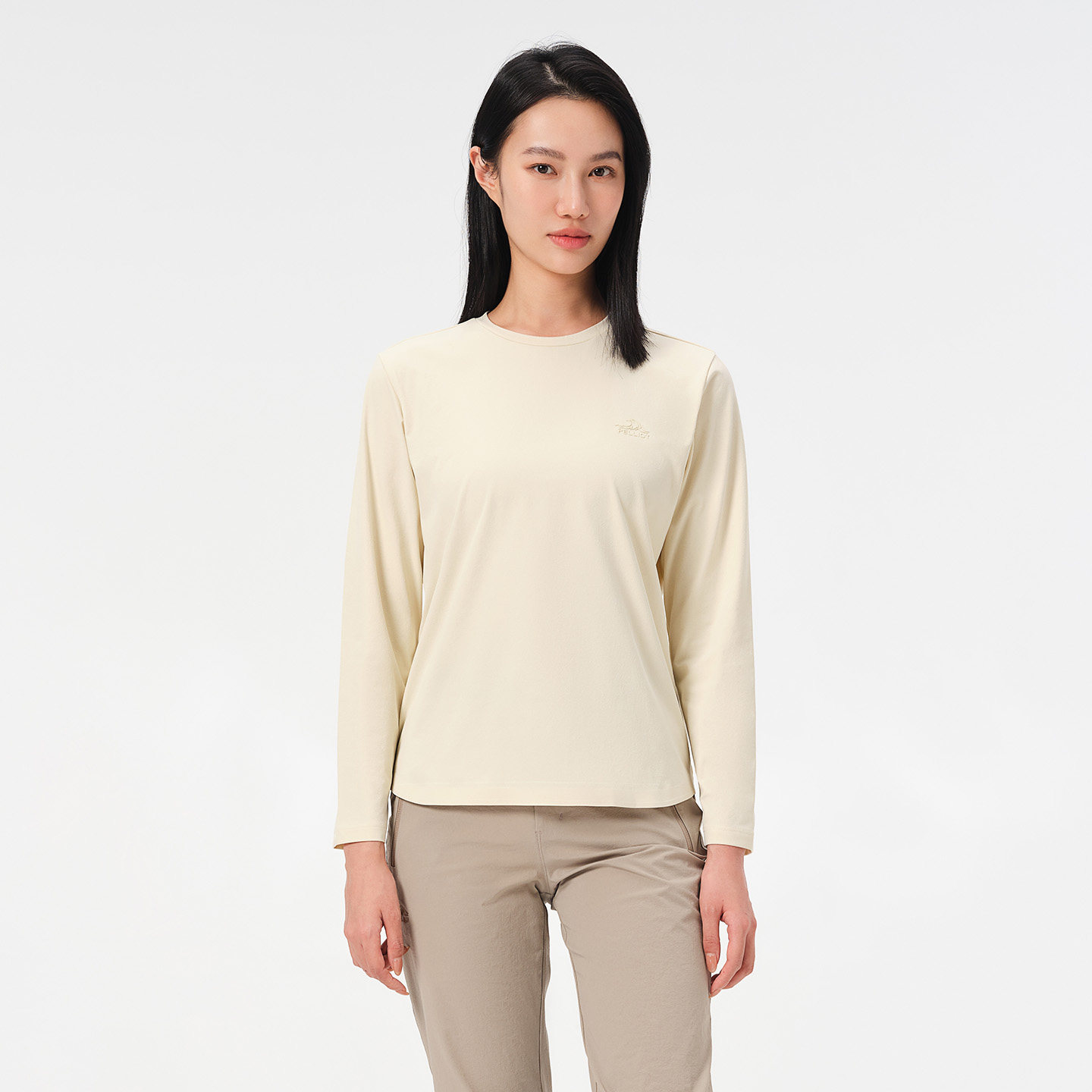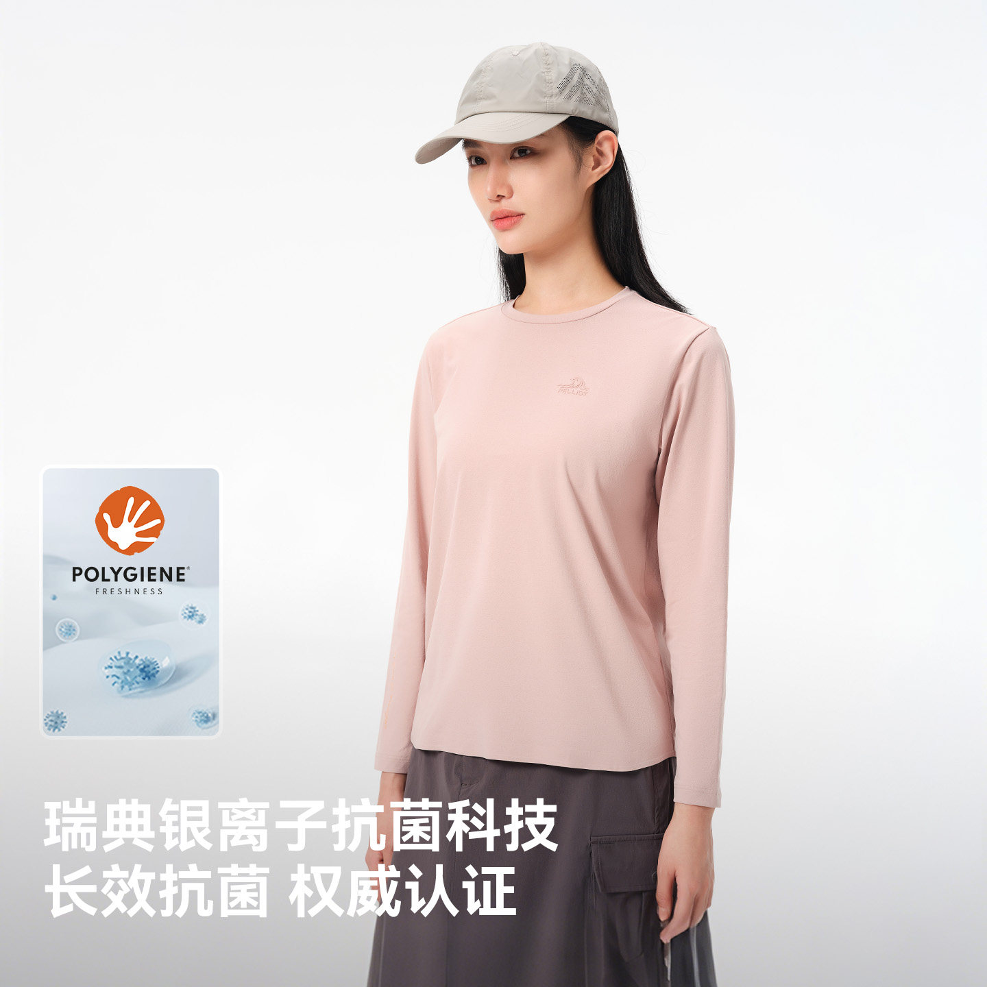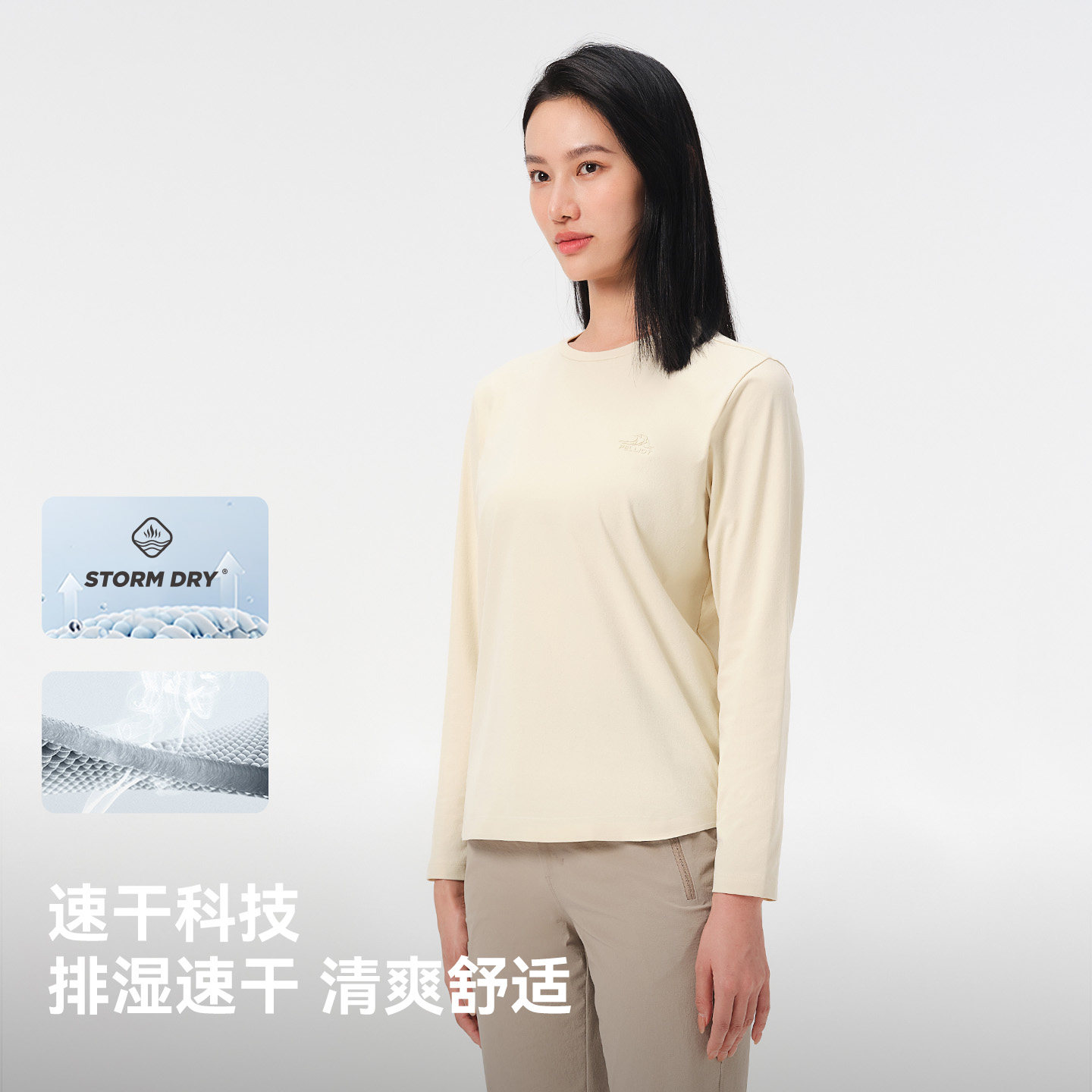 伯希和户外速干T恤女抑菌抗皱透气休闲长袖打底纯色百搭运动上衣