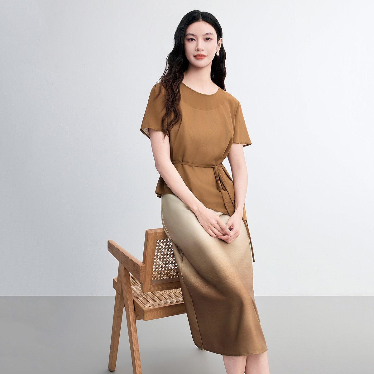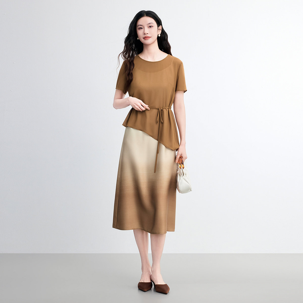 FINITY菲妮迪时尚套装2026春季新款简约渐变不规则设计感两件套女