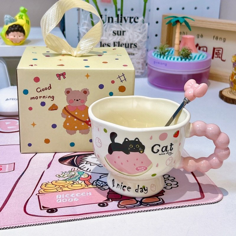 趣皿卡通陶瓷杯少女心马克杯可爱咖啡杯情侣水杯高颜值早餐牛奶杯