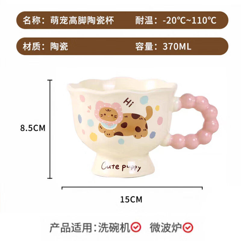 创意可爱家用水杯高脚杯马克杯卡通牛奶杯ins风高颜值陶瓷杯情侣
