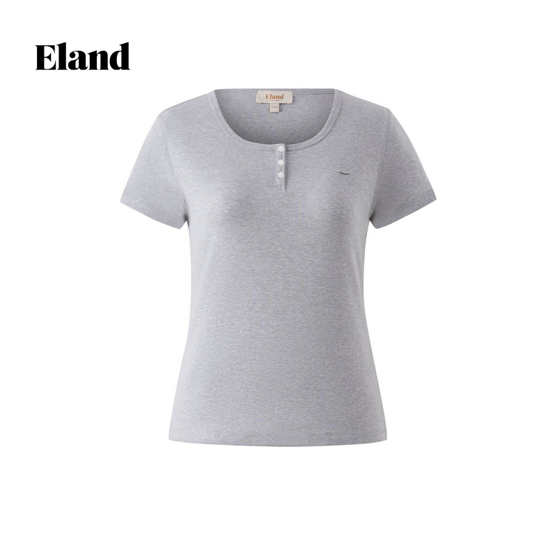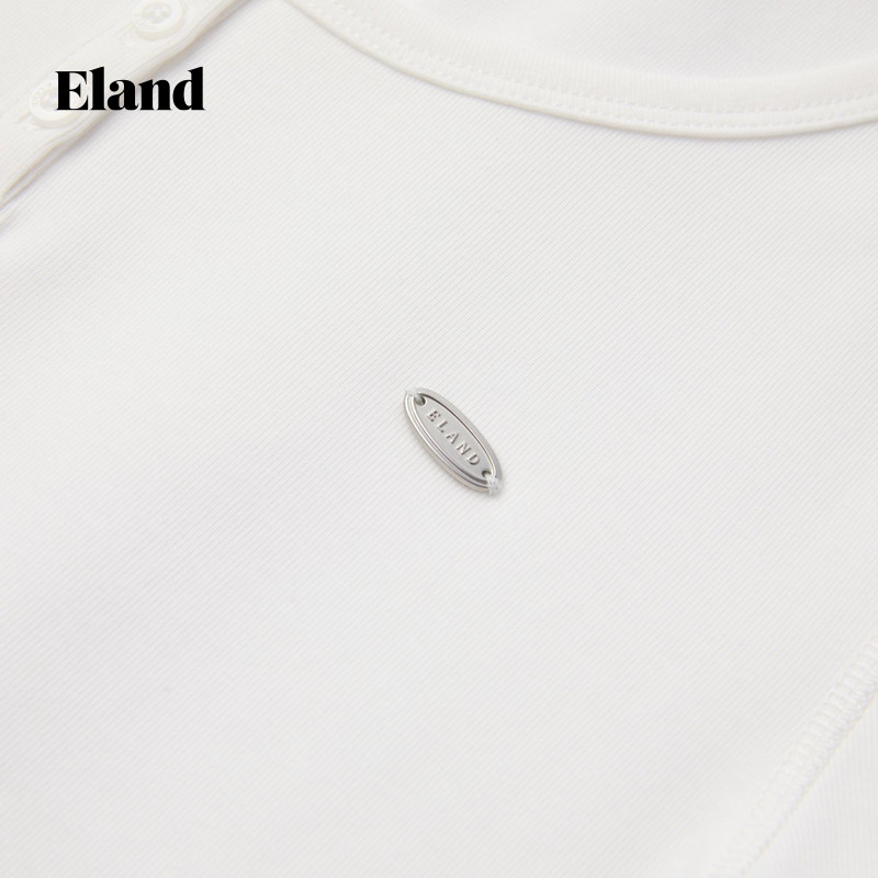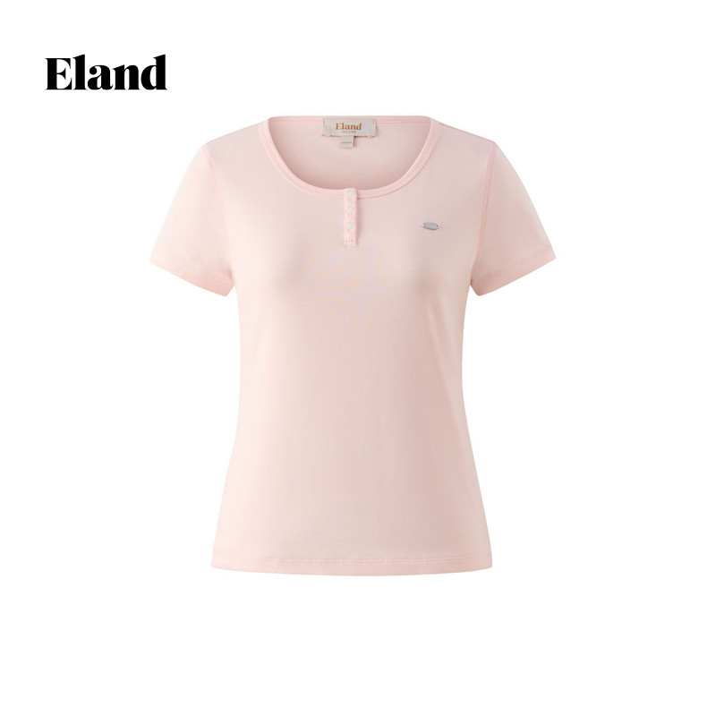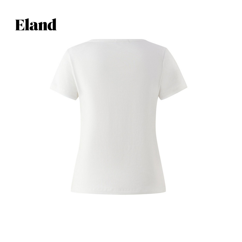 【93%棉】Eland衣恋T恤女纯色简约圆领修身短袖微收腰上衣夏季