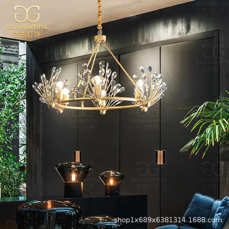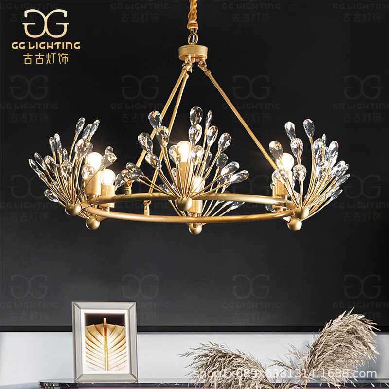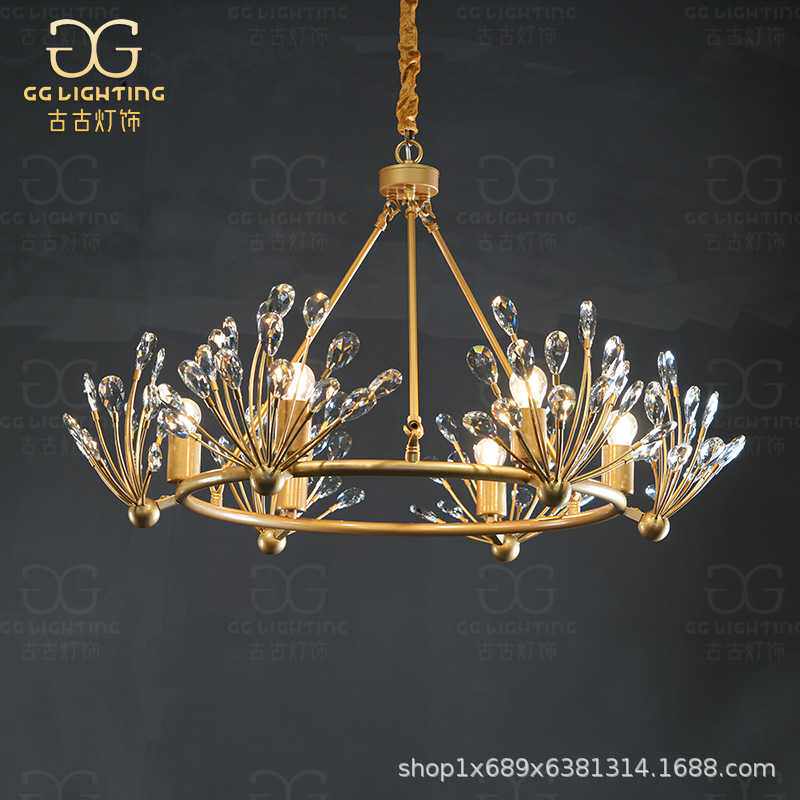 全铜美式水晶吊灯客厅灯轻奢后现代卧室餐厅灯具大气简约高档灯饰