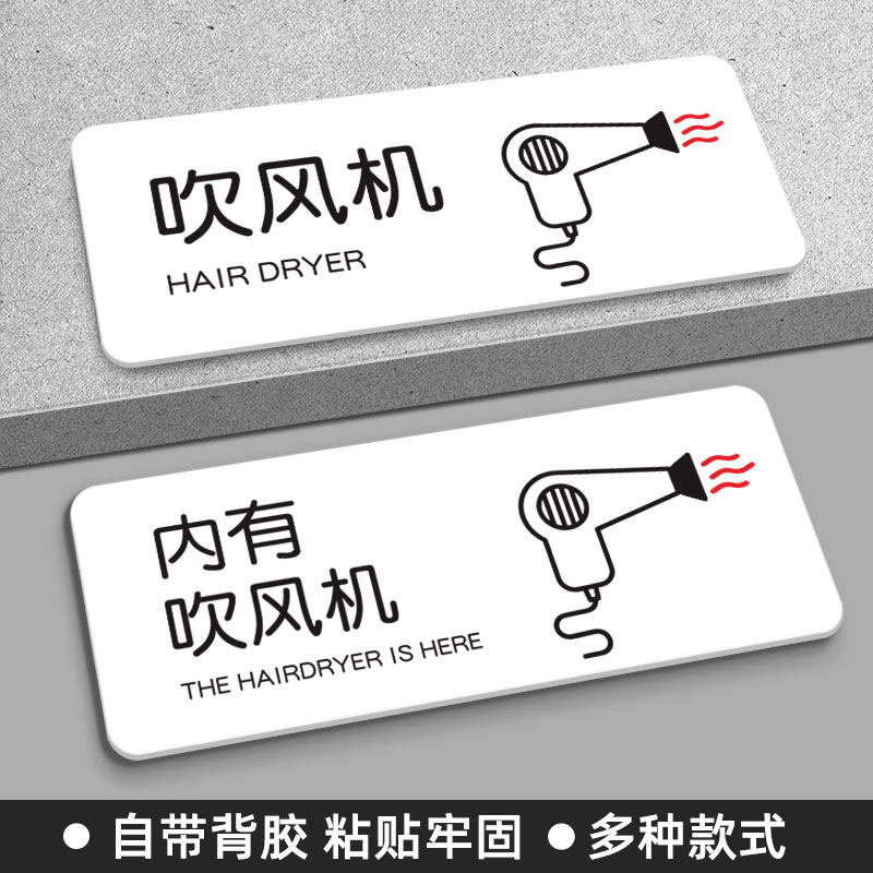 内有吹风机标识牌酒店宾馆民宿亚克力温馨提示牌定制浴室洗手间卫生间洗涤用品洗手台沐浴露洗发液护发素标签