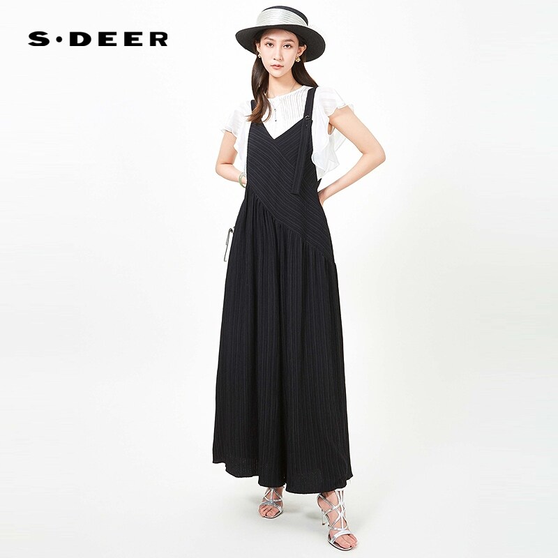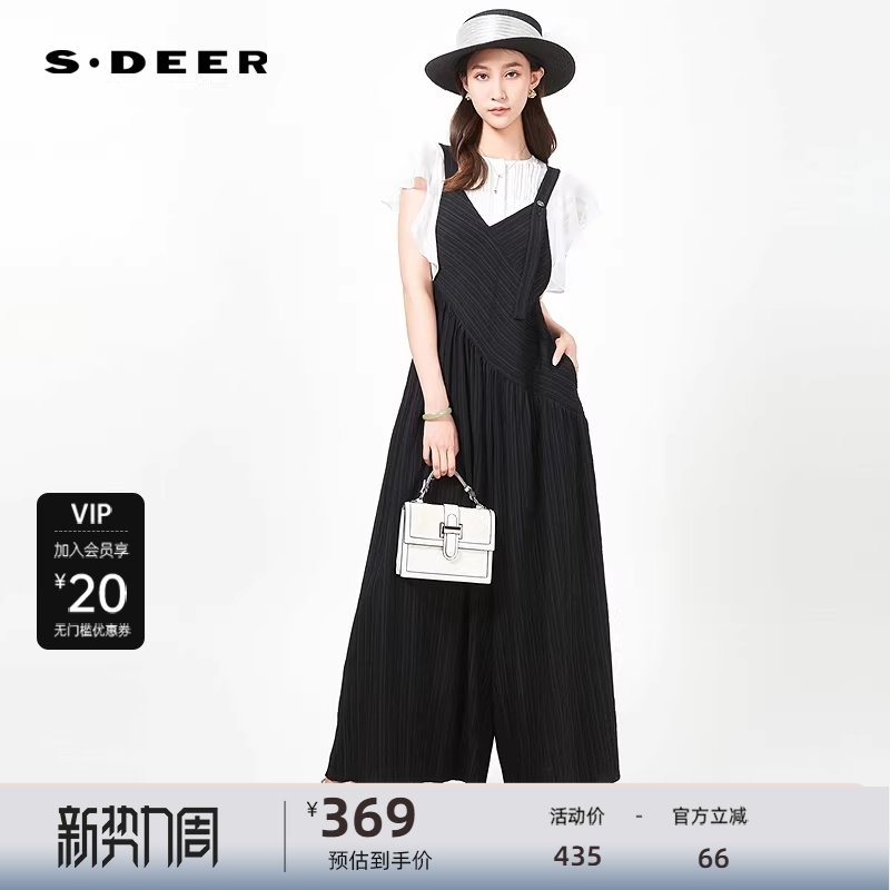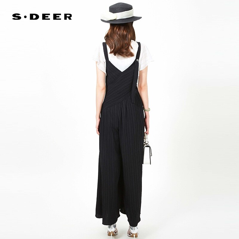 sdeer圣迪奥女装时尚肌理压褶背带阔腿长裤S242Z1003
