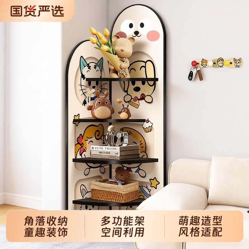多巴胺电视柜旁边落地摆件多层收纳转角柜儿童房装饰角柜三角柜