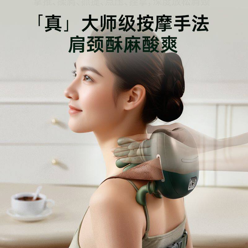 颈椎按摩器多功能斜方肌颈肩背揉捏热敷披肩仿真手按摩器仪