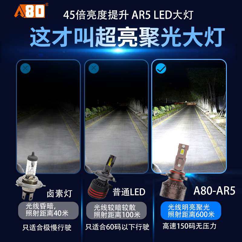 跨境新款AR5汽车高亮LED大灯150W大功率前车灯H4远近光一体灯泡H7