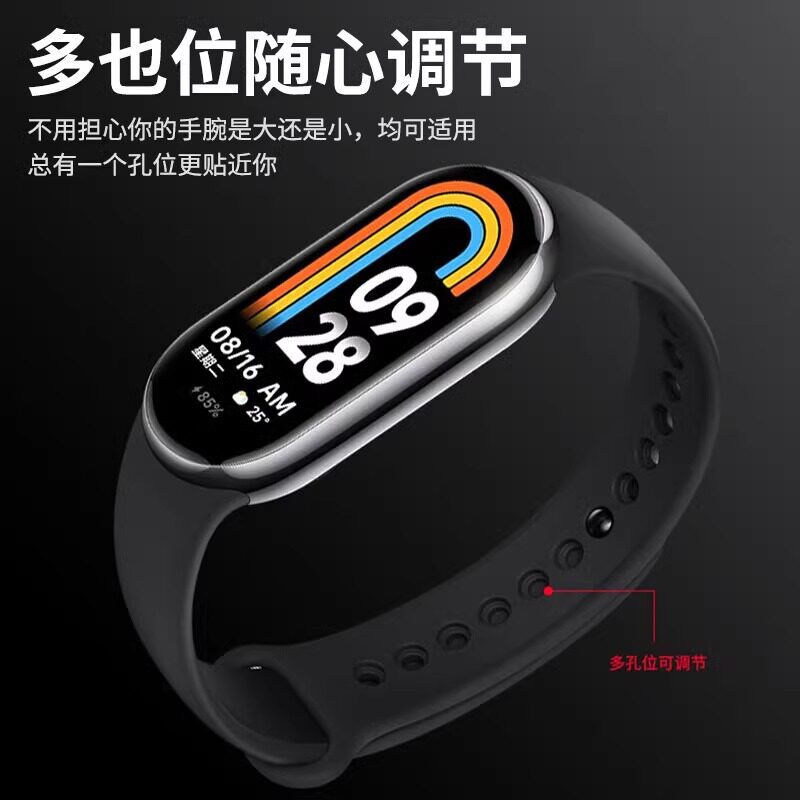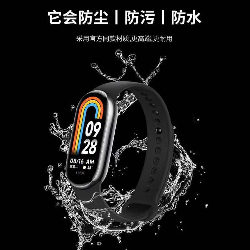 适用小米手环7表带10/9/8//6/5NFC版液态硅胶透气xiaomi手环8同款运动七八九十代表带链手非原装粉色金属黑色