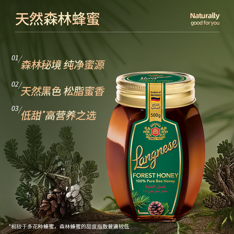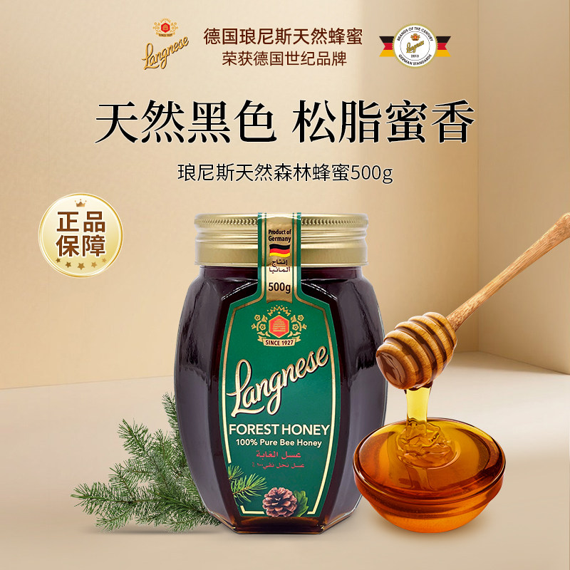 琅尼斯森林蜂蜜松树黑蜂蜜德国原装进口天然黑色低甜树蜜500g