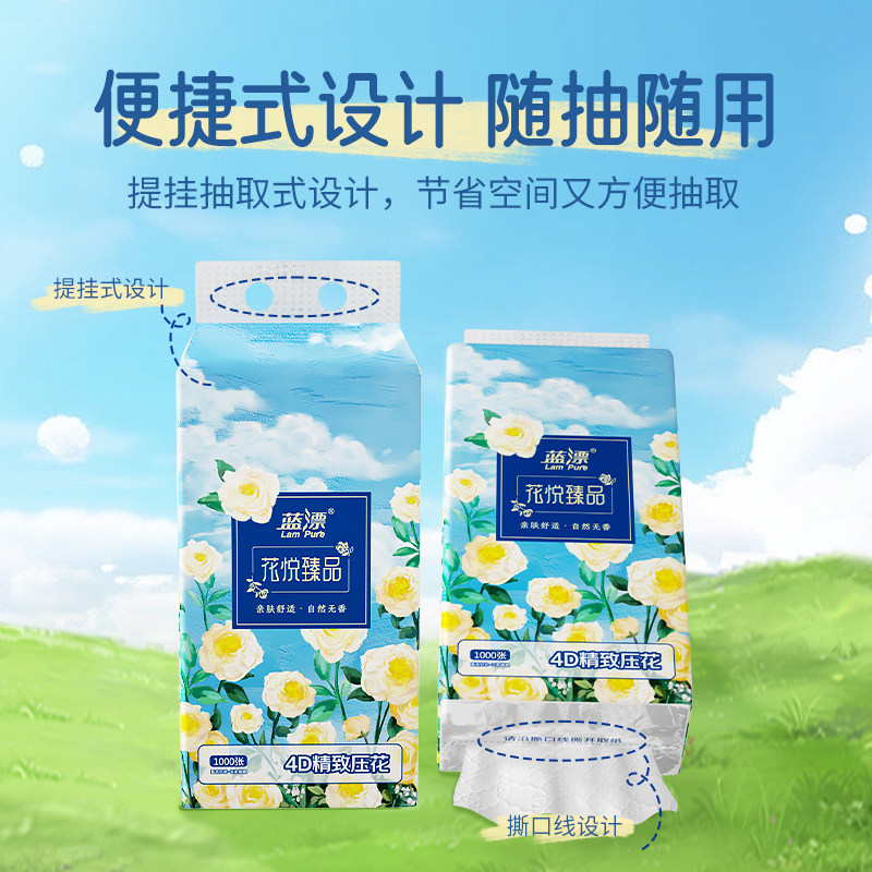 蓝漂1000张悬挂式抽纸大包实惠装纸巾家用纸抽宿舍抽取厕纸面巾纸