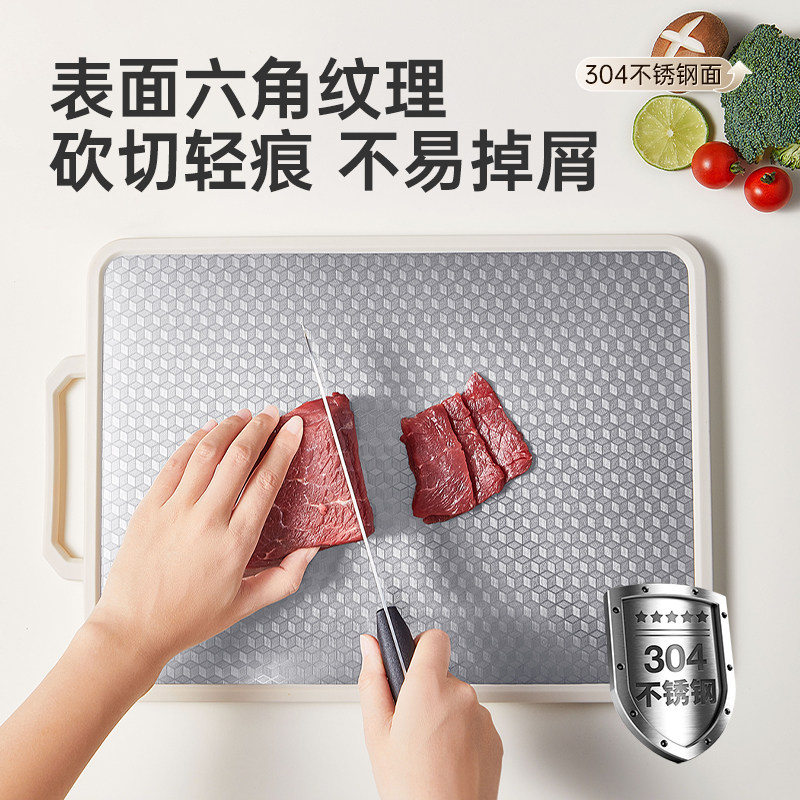 炊大皇双面菜板304不锈钢切菜板家用加厚粘板水果砧板厨房案板