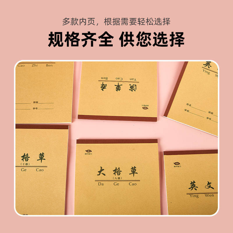 富恒护眼加厚学生牛皮作业本淡黄色道林纸笔记白纸作文英文本38页