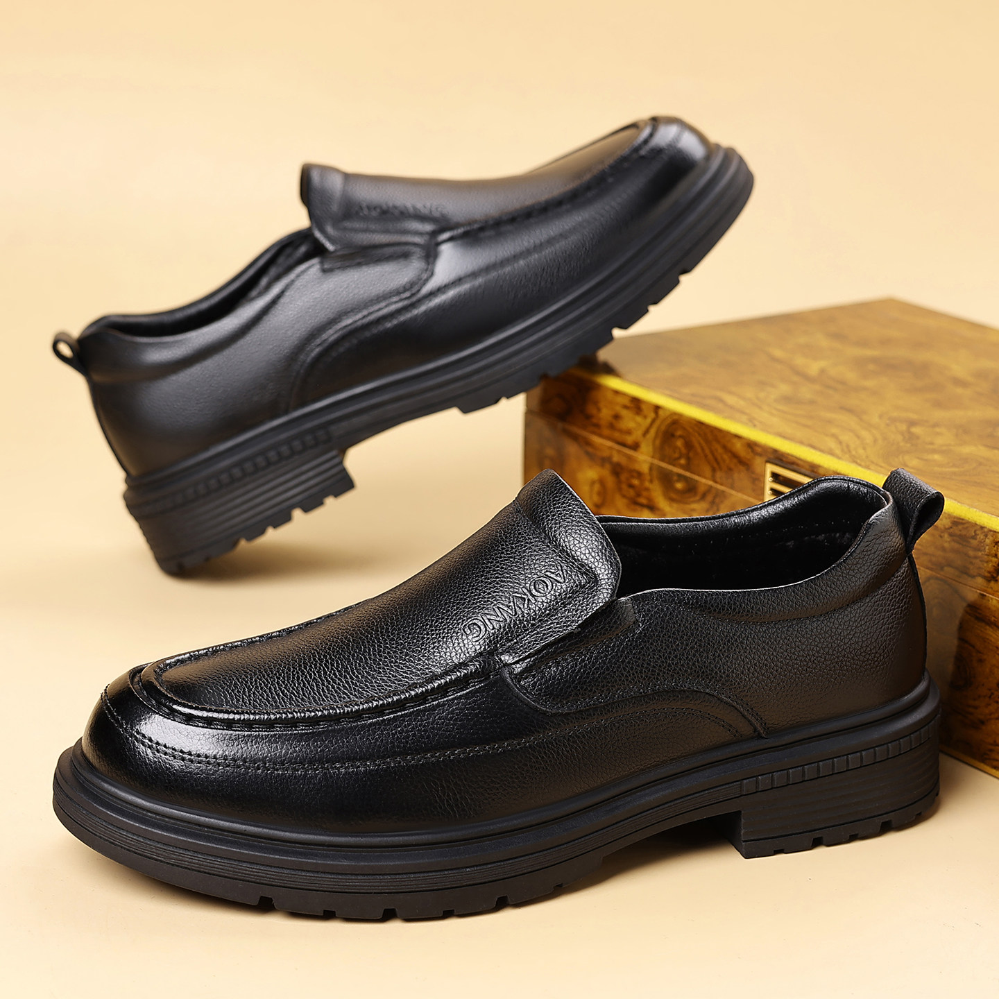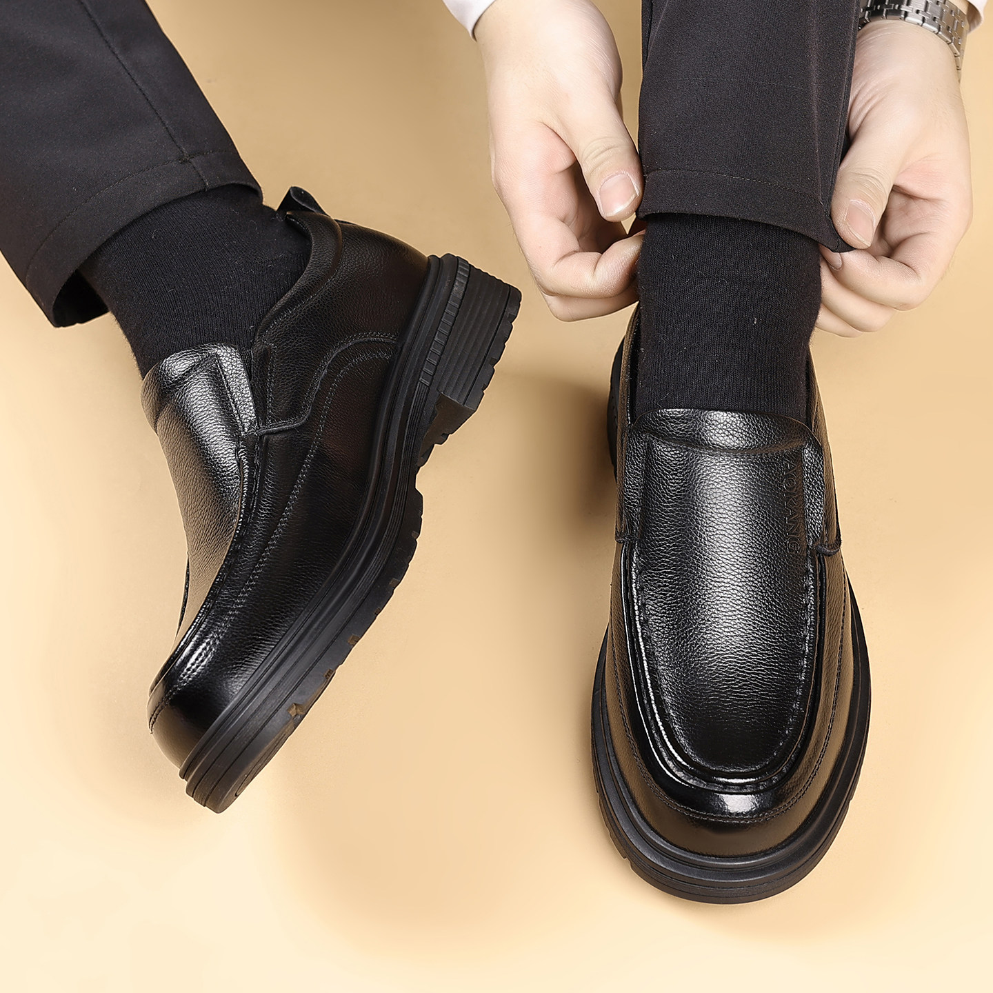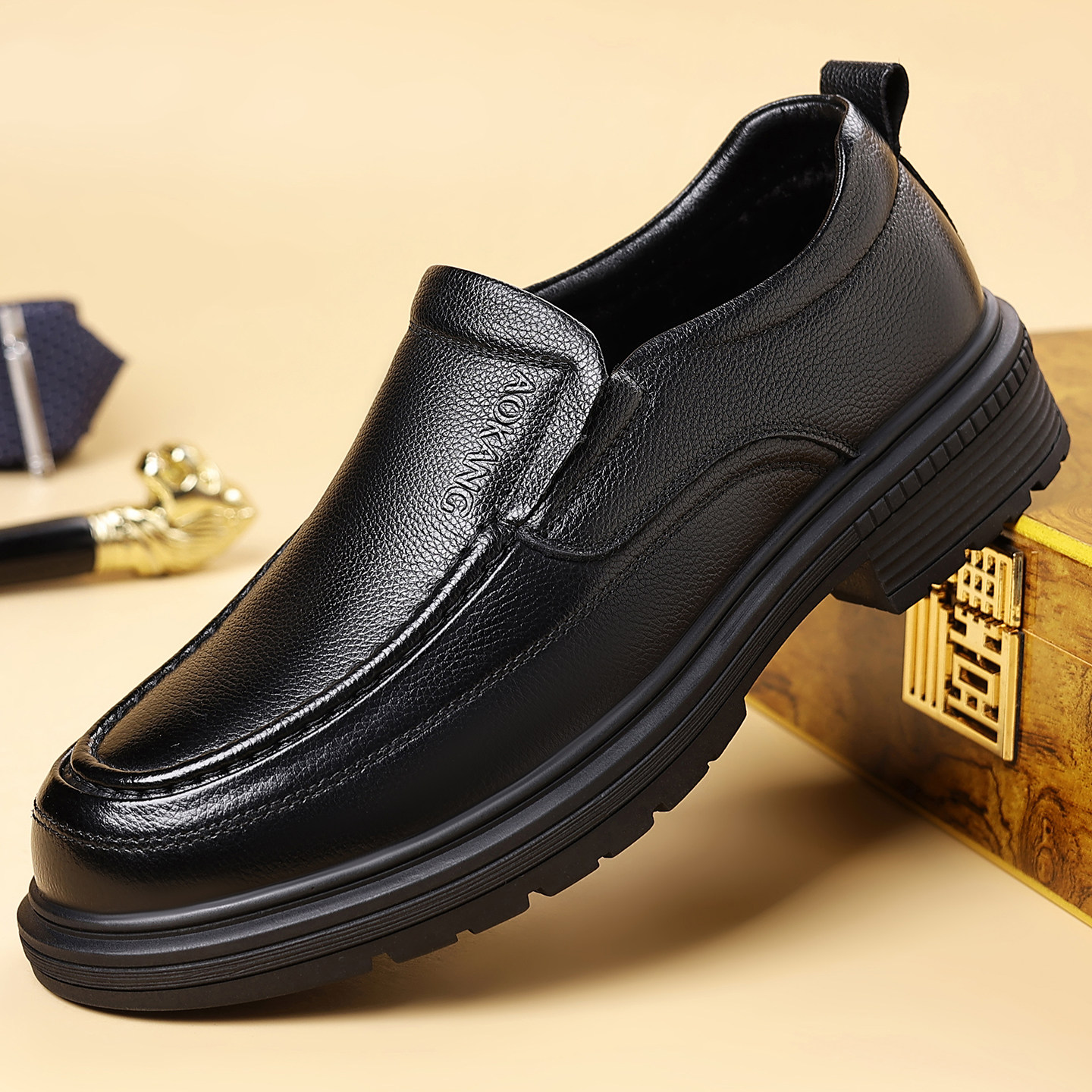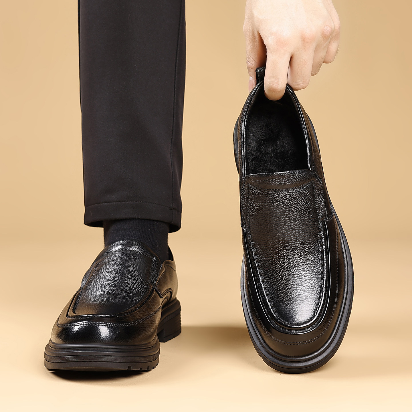 老人头皮鞋男真皮冬季中老年爸爸鞋大码男鞋加绒厚底商务休闲皮鞋