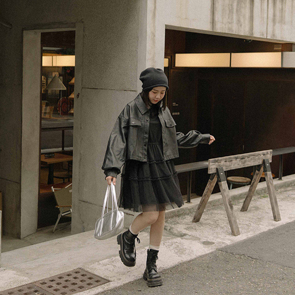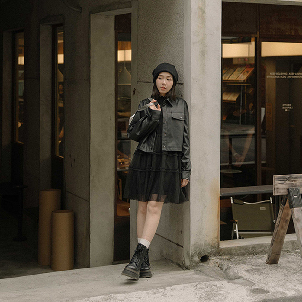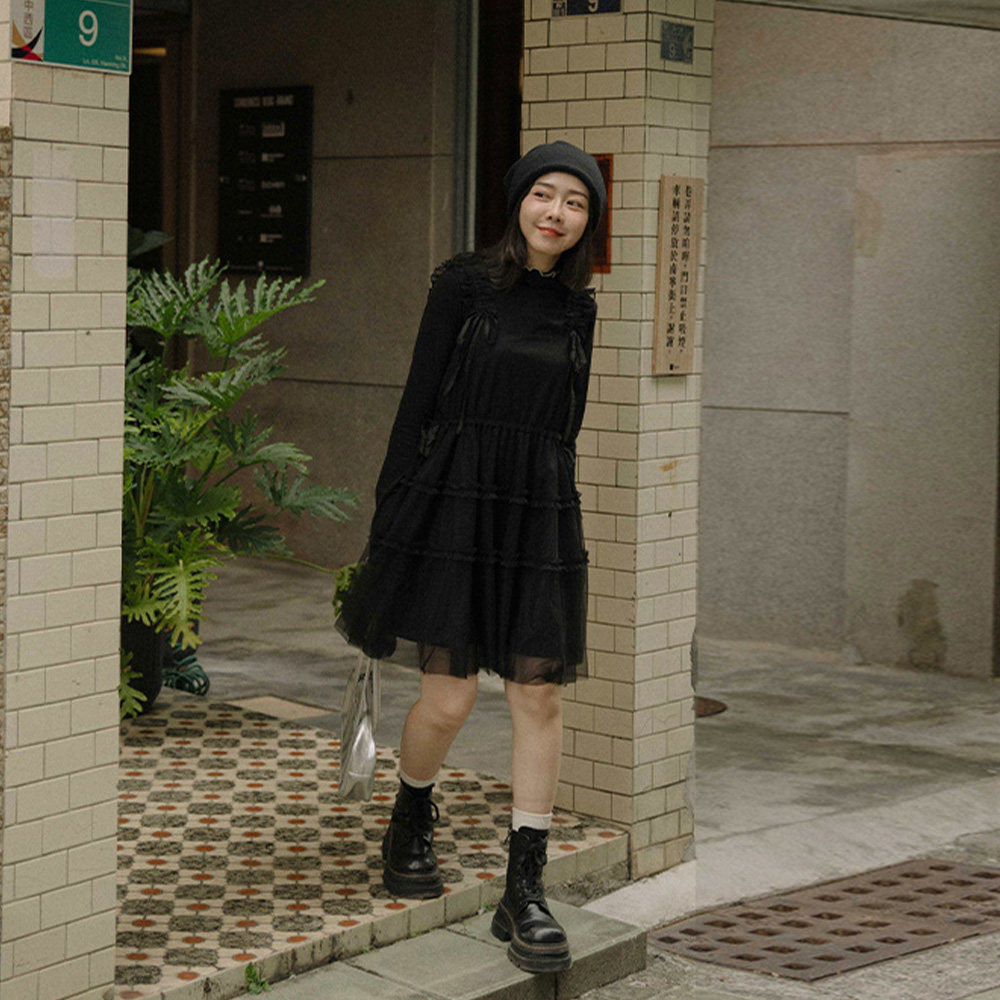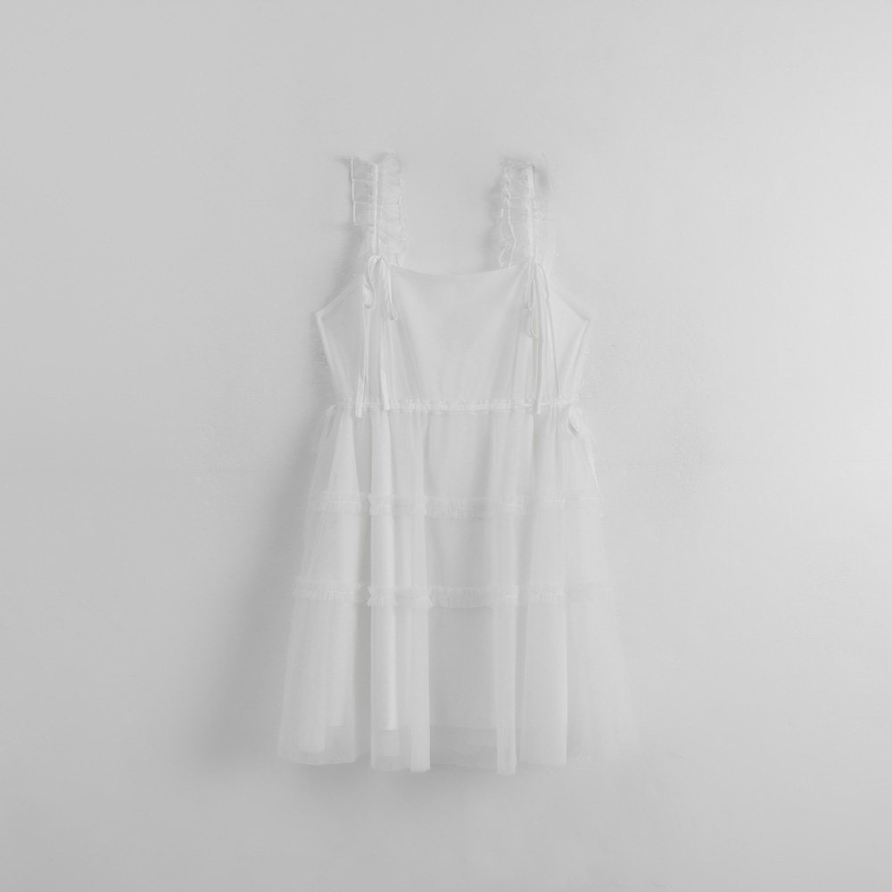 QUEENSHOP 2025秋冬新品女装绑带抽绳设计网纱短连衣裙01087179