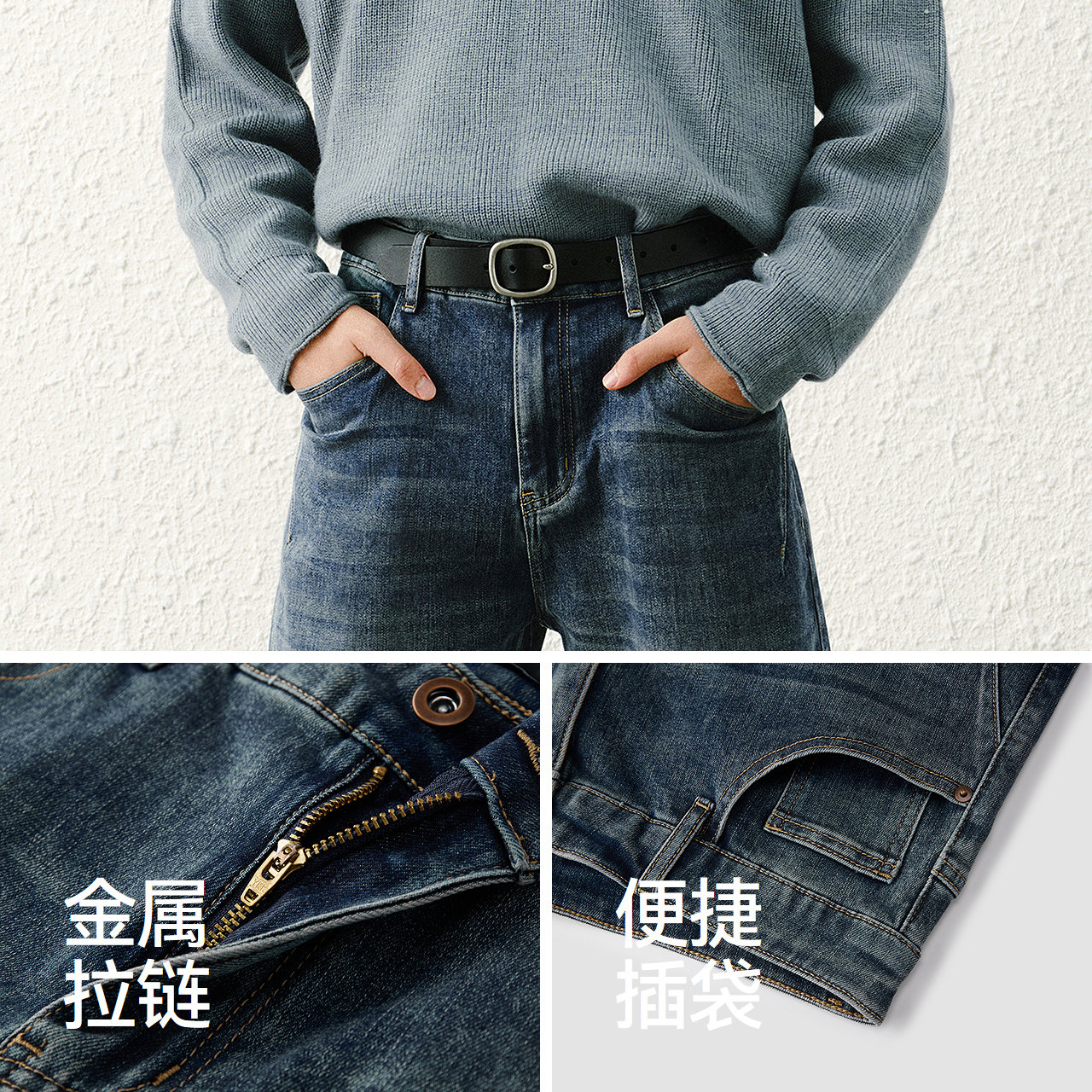 森马牛仔裤男猫须做旧复古宽松直筒裤2025秋冬新款长裤子经典质感