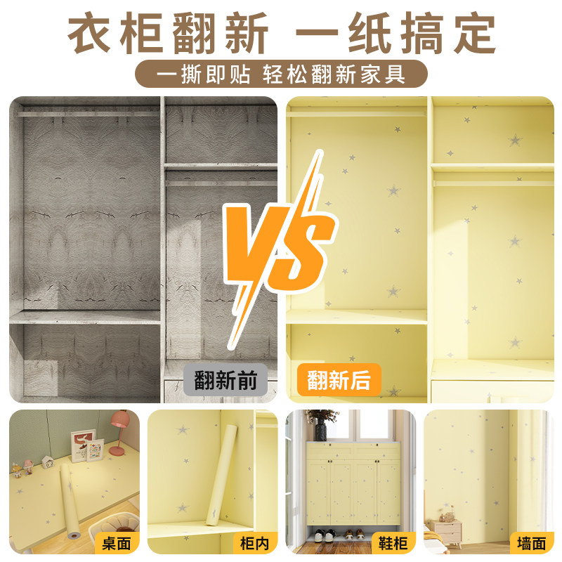 衣柜内贴纸翻新自粘防水防潮防霉柜子垫纸遮丑改造贴膜卧室美化