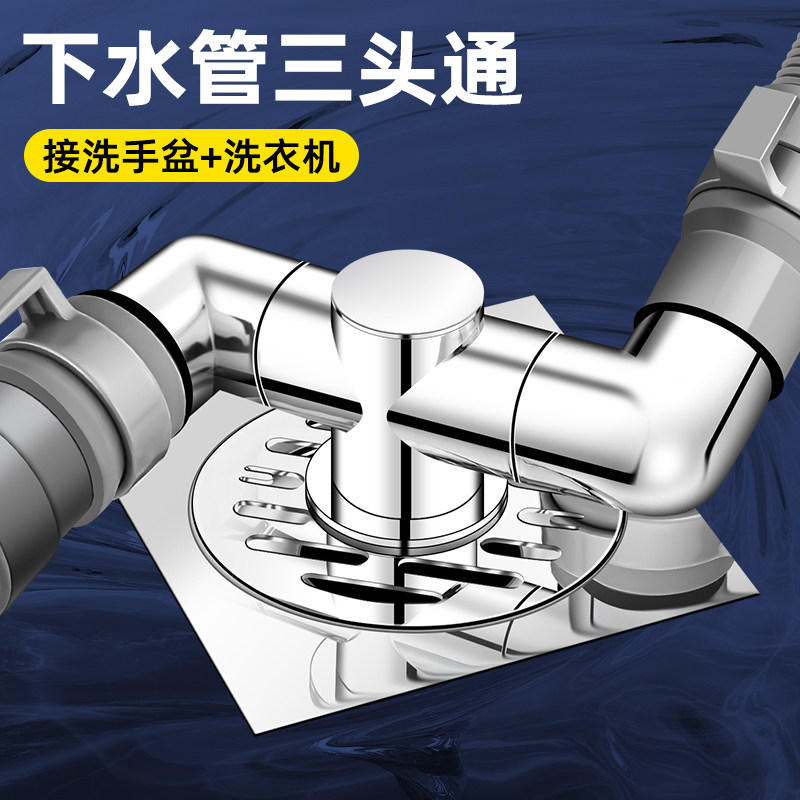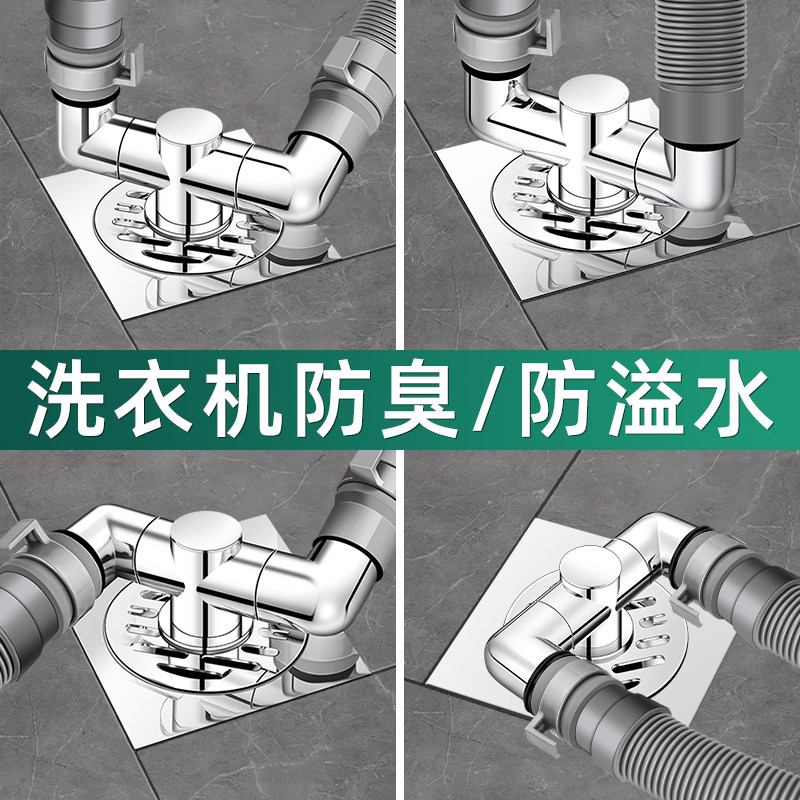 洗衣机地漏专用接头下水排水管道防反溢水二合一三通方形地漏盖子