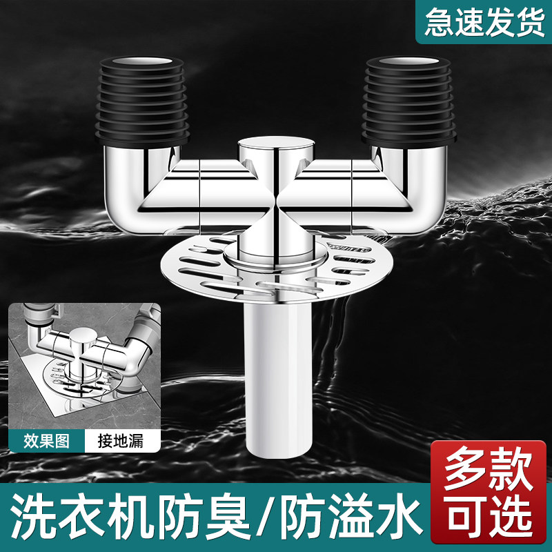 洗衣机下水管道地漏三通接头防臭防溢水出水排水二合一专用分流器