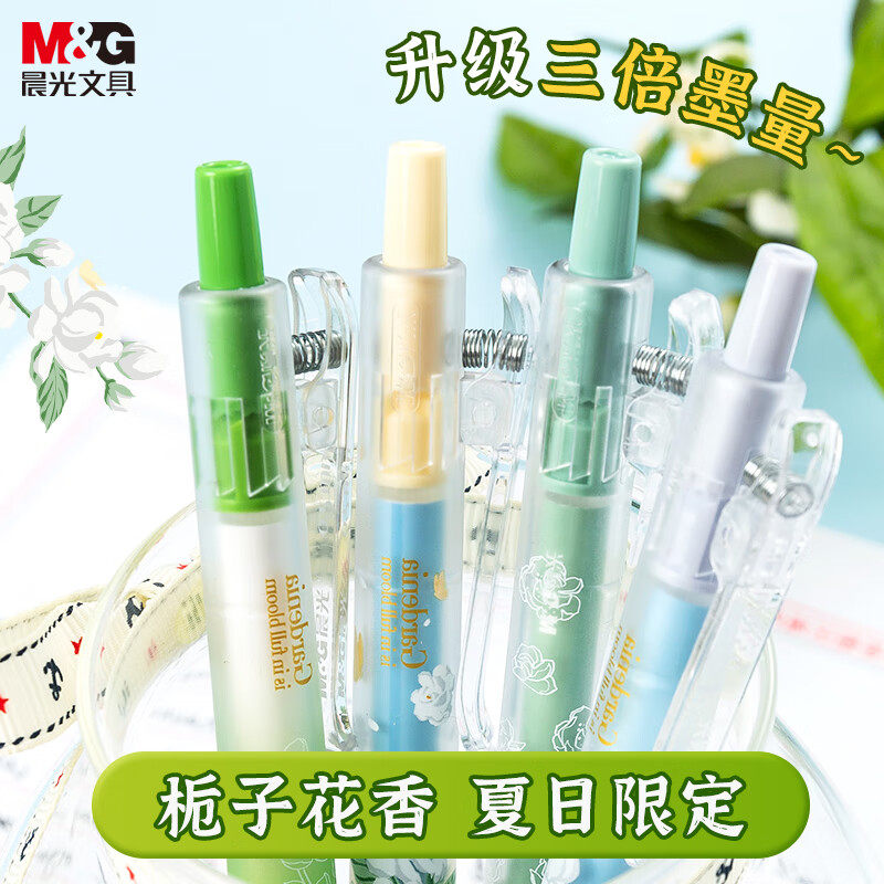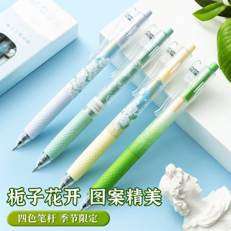 晨光夏日限定栀子花开按动签字中性笔ST桂花香味学生用考试刷题专用速干小分贝静音子弹头笔芯黑色高颜值水笔
