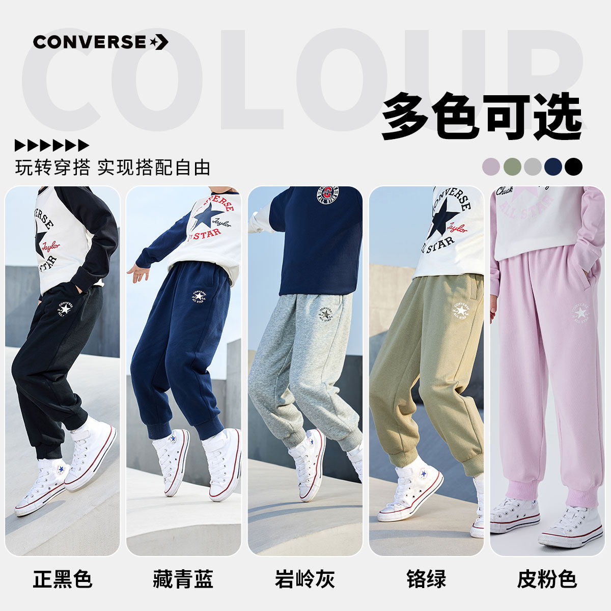 匡威男童裤子2026春季新款女童长裤儿童运动裤卫裤中大童休闲裤潮