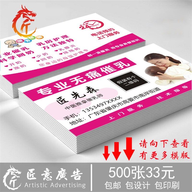 打印催乳师名片订制 小儿推拿母婴护理定做 产后T通乳月嫂定制个