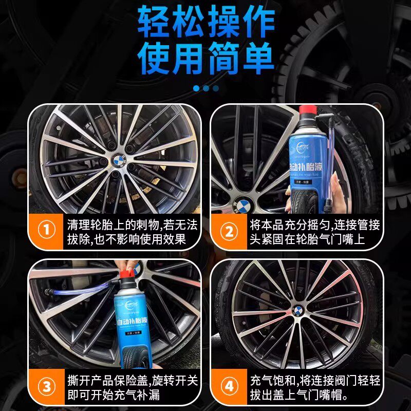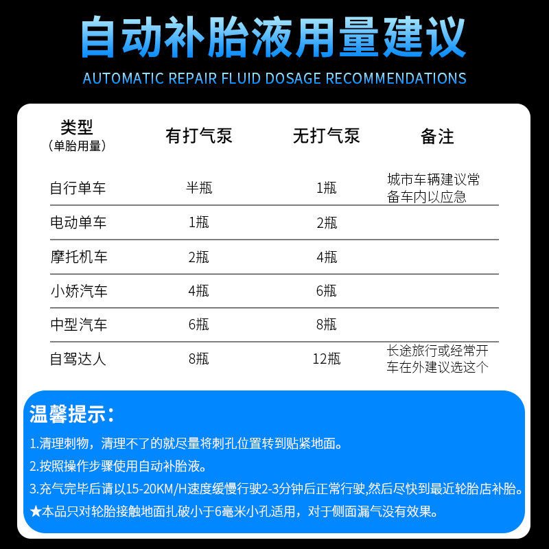 仆旅摩托车汽车应急自动充气电动车真空胎内胎保养工具轮胎补胎液
