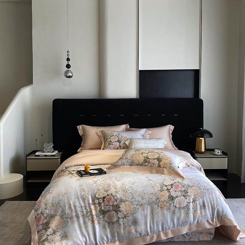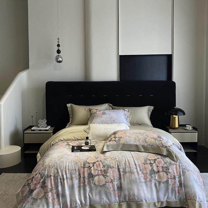 美式高端天丝棉被套床单套件数码印花秋冬裸睡床上用品床盖四件套