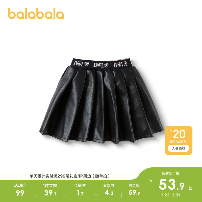 巴拉巴拉童装女童短裙甜酷时髦仿皮裙秋冬百褶裙儿童宝宝裙子洋气