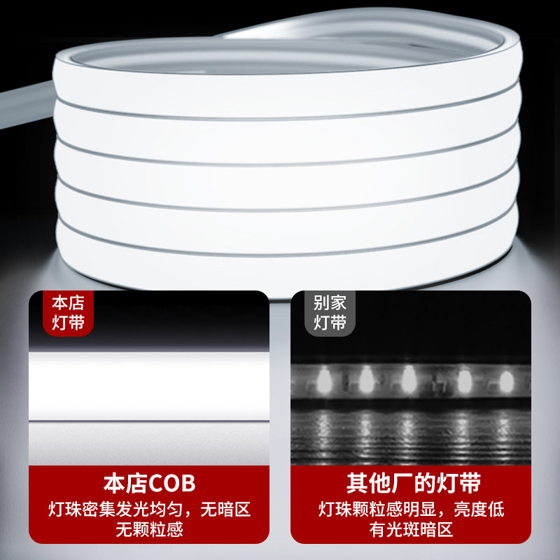 鼎雁led灯带220v防水超亮自粘线形灯槽客厅吊顶氛围COB户外软灯条