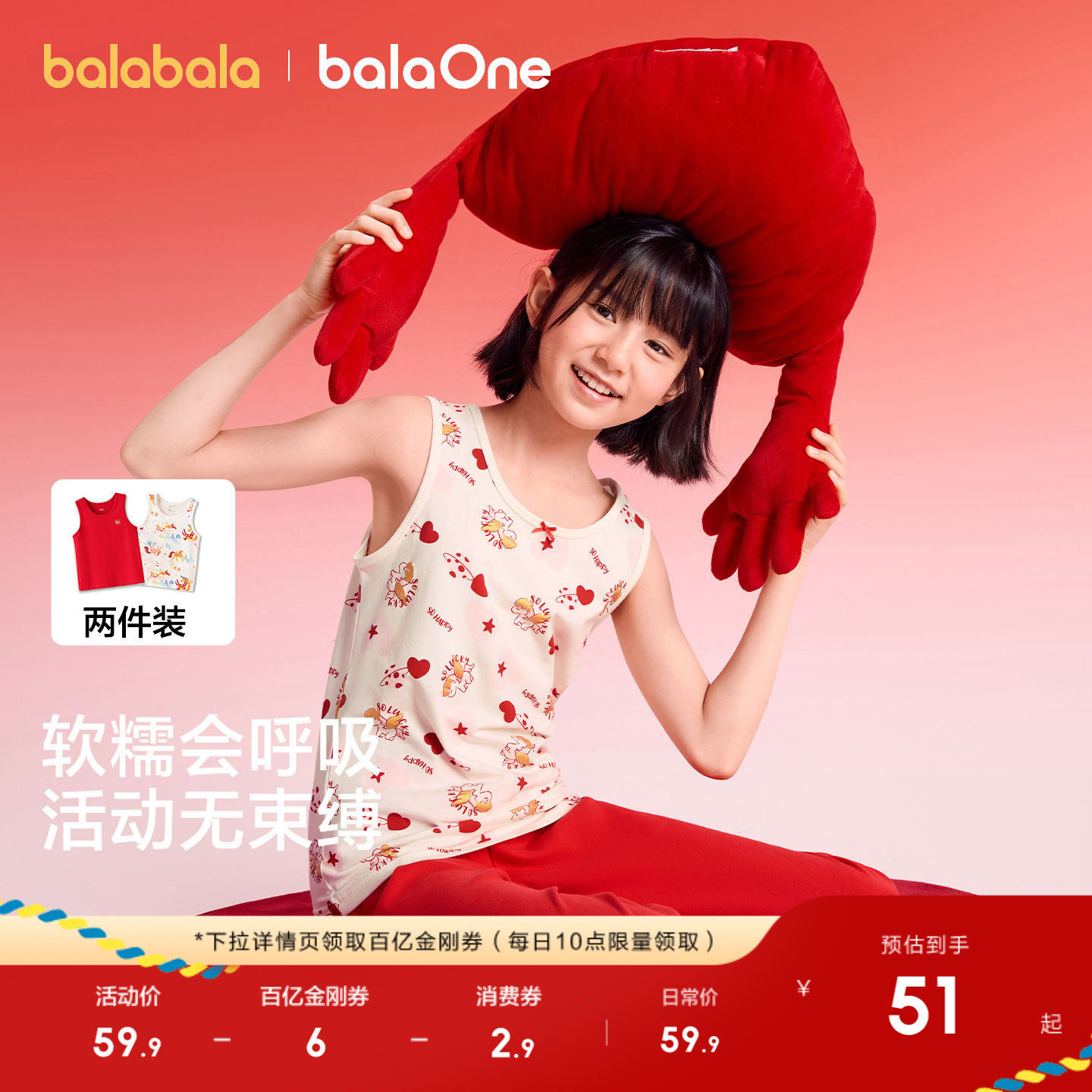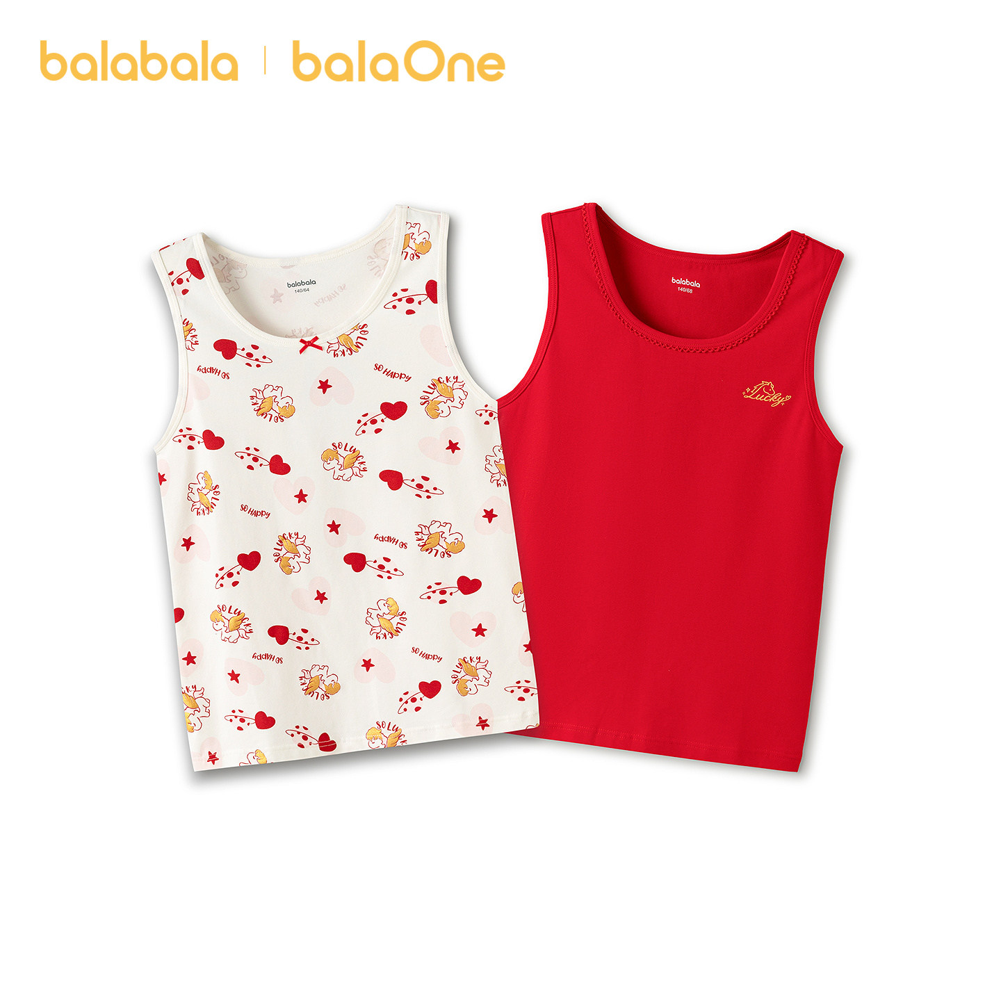 巴拉巴拉儿童打底背心女童内衣男童上衣吊带新年季本命红色拜年服