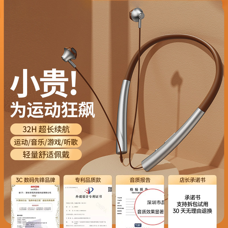 柏林之音蓝牙耳机无线颈挂脖式2024新款超长续航跑步运动型高音质