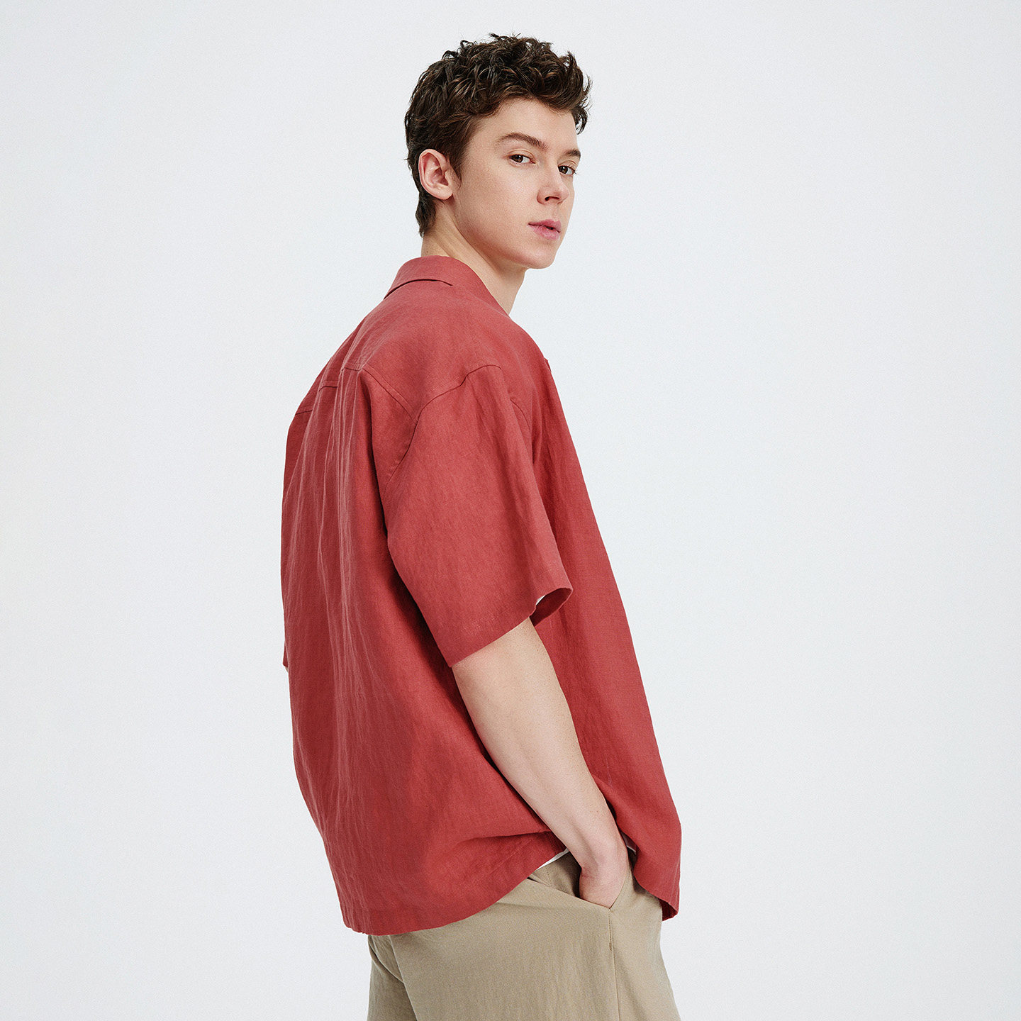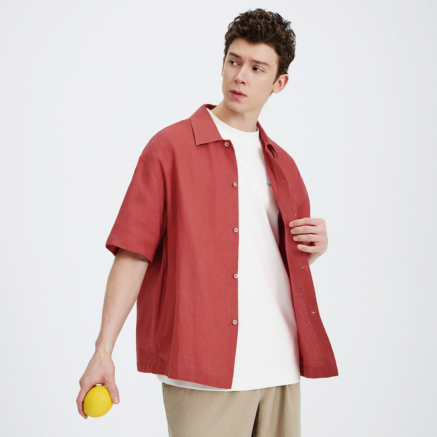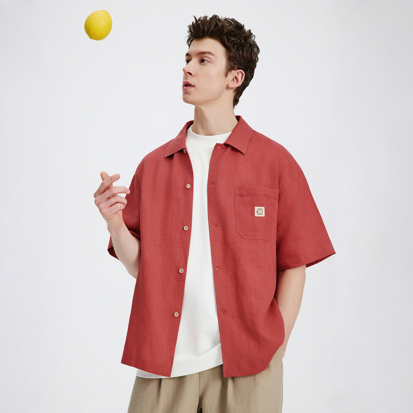 Navigare意大利小帆船红色亚麻衬衫男短袖2026夏季翻领衬衣外套