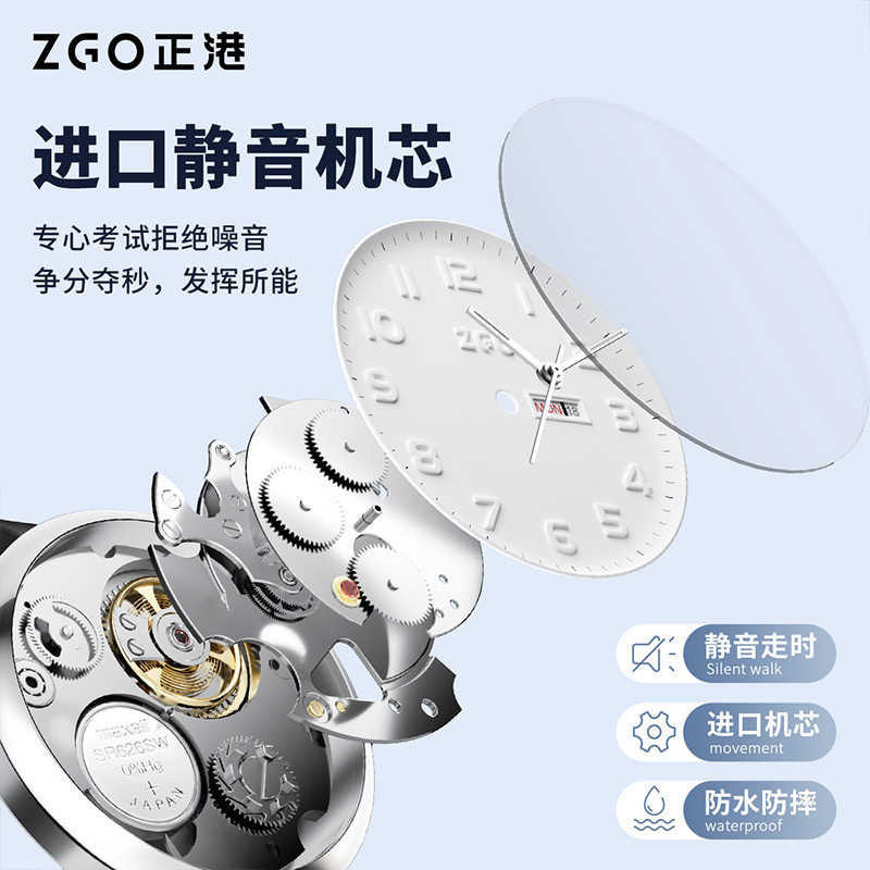 正港ZGO考试专用手表男生初高中学生机械静音公务员考研指针表女