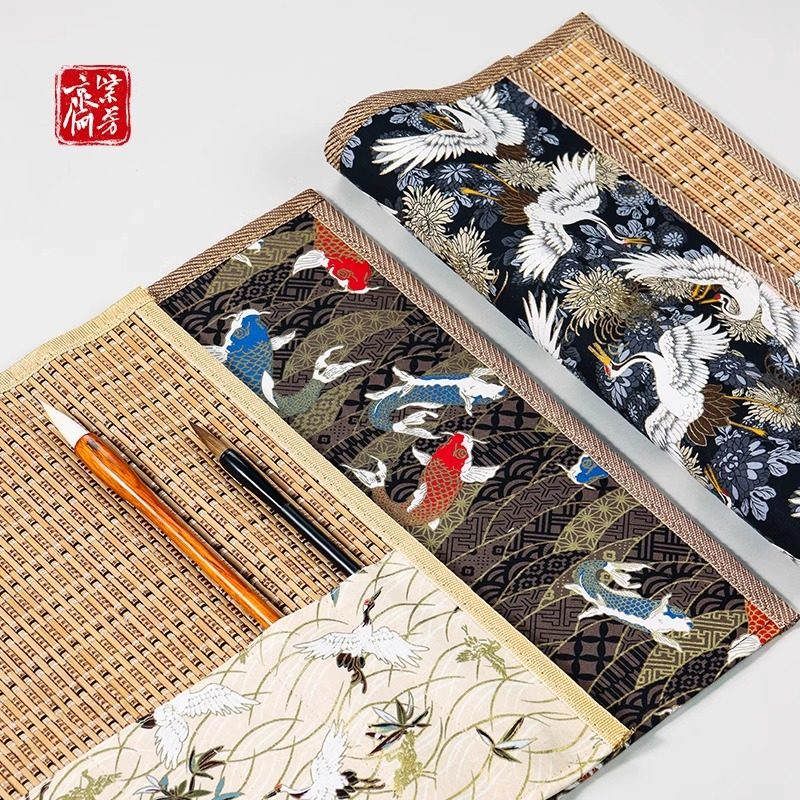 中国风收纳笔袋 便携竹帘 便携文房收纳袋