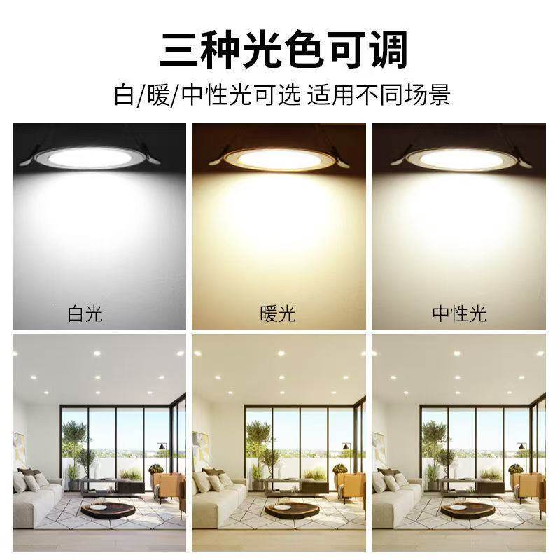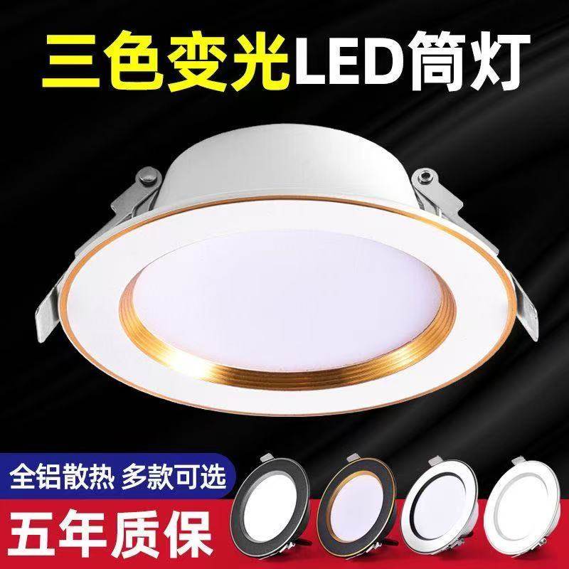 筒灯嵌入式led天花板家用客厅三色射灯圆形吊顶洞灯灯具卧室全铝